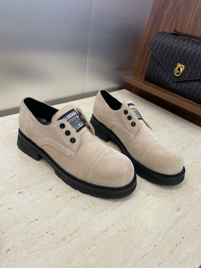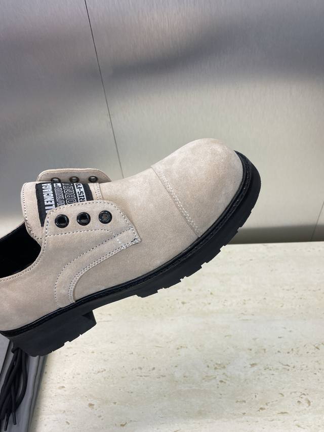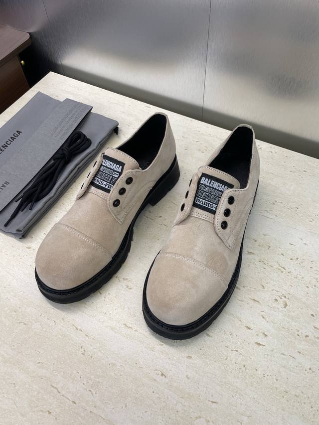 Balenciaga 2025秋冬新款情侣时尚两穿款系带休闲鞋 巴黎世家字母Logo厚底低跟圆头一脚蹬套脚乐福鞋