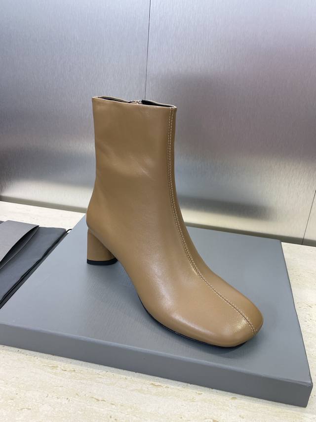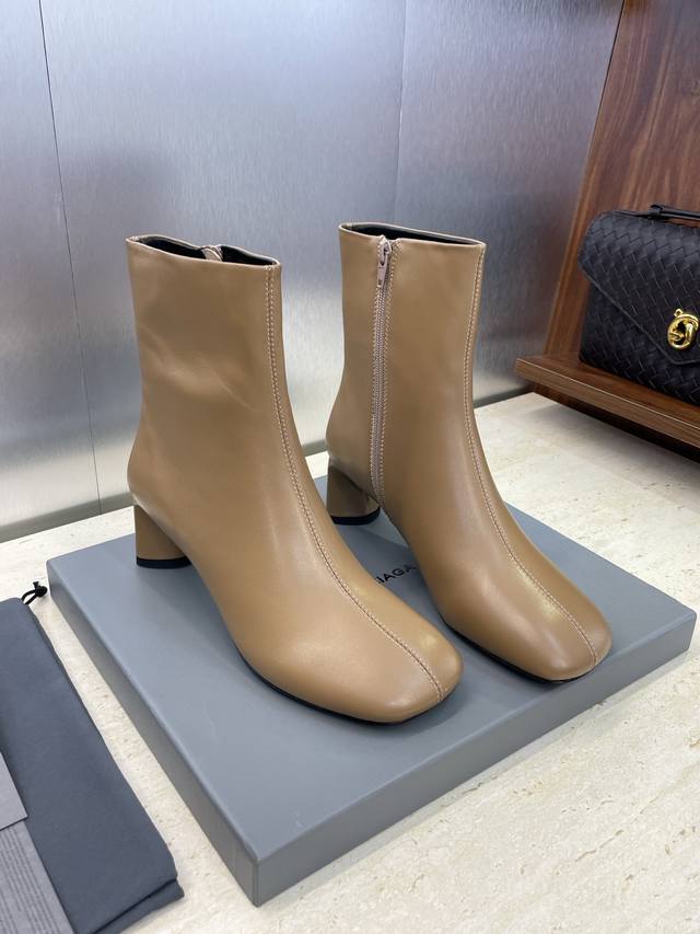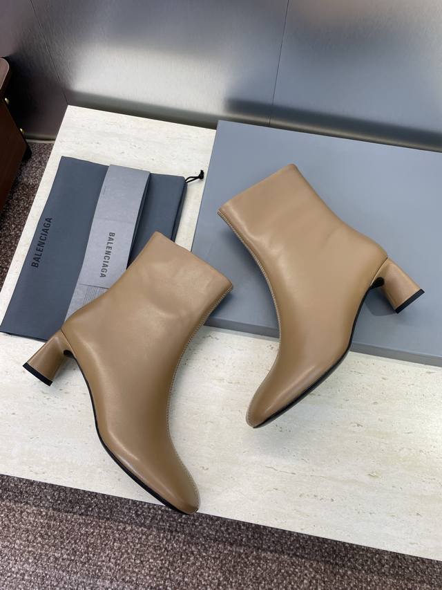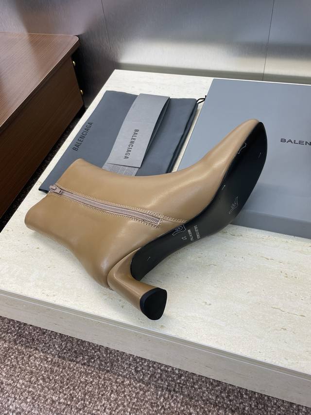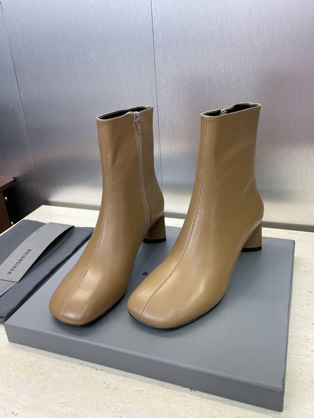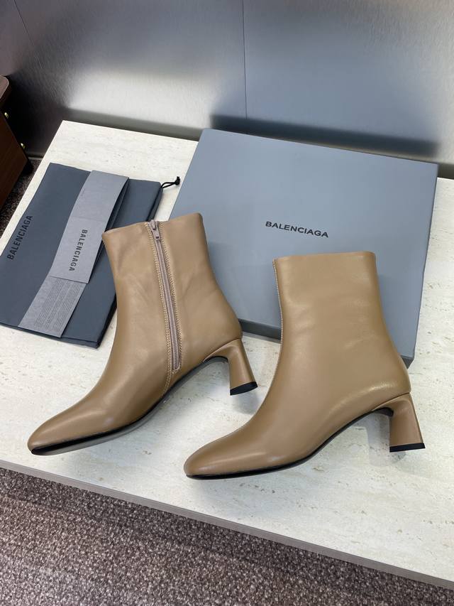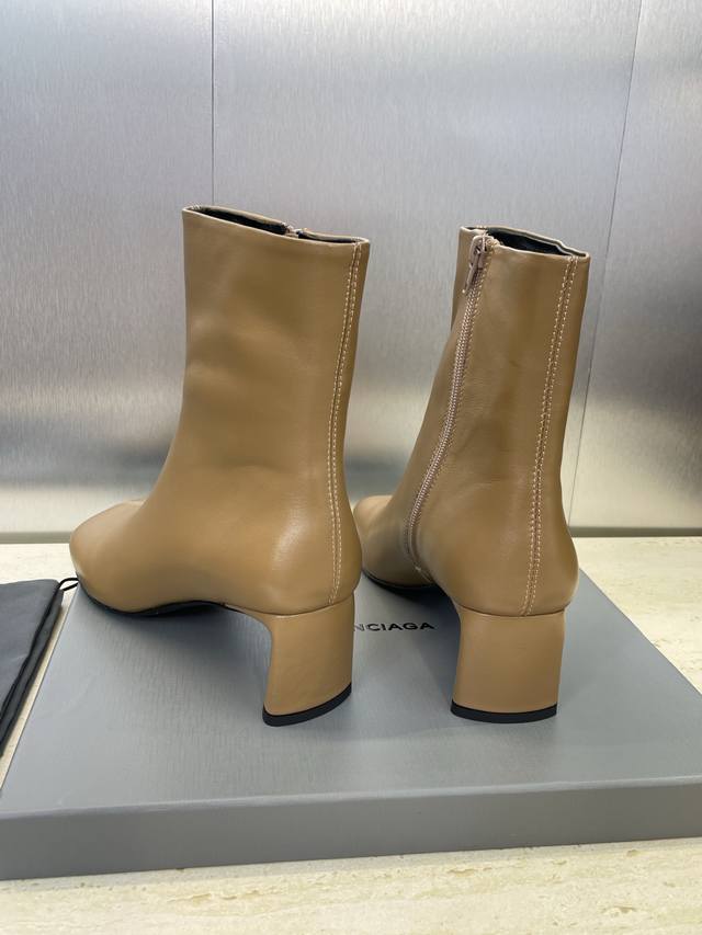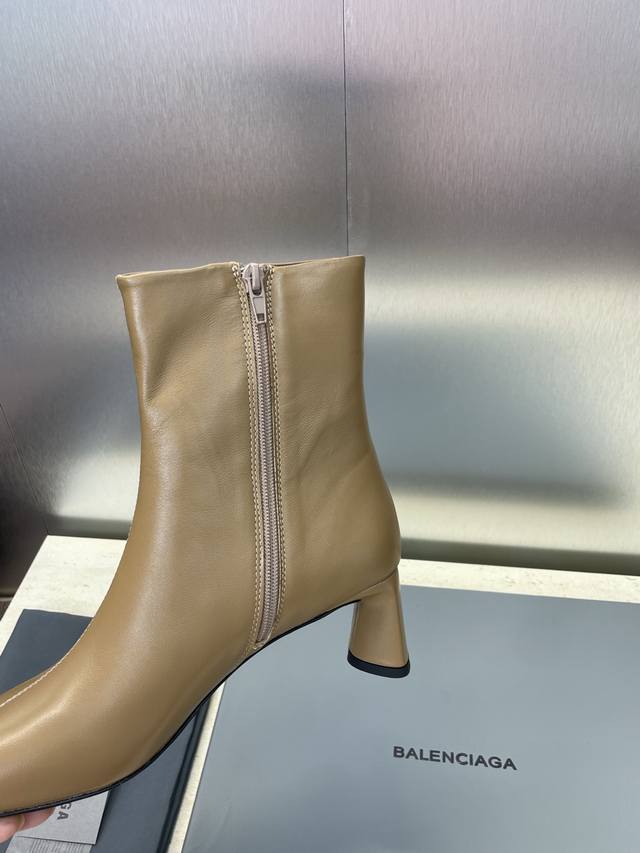 Balenciaga 2025秋冬新款及裸马丁女短靴 巴黎世家字母Logo中跟方头侧拉链机车骑士靴