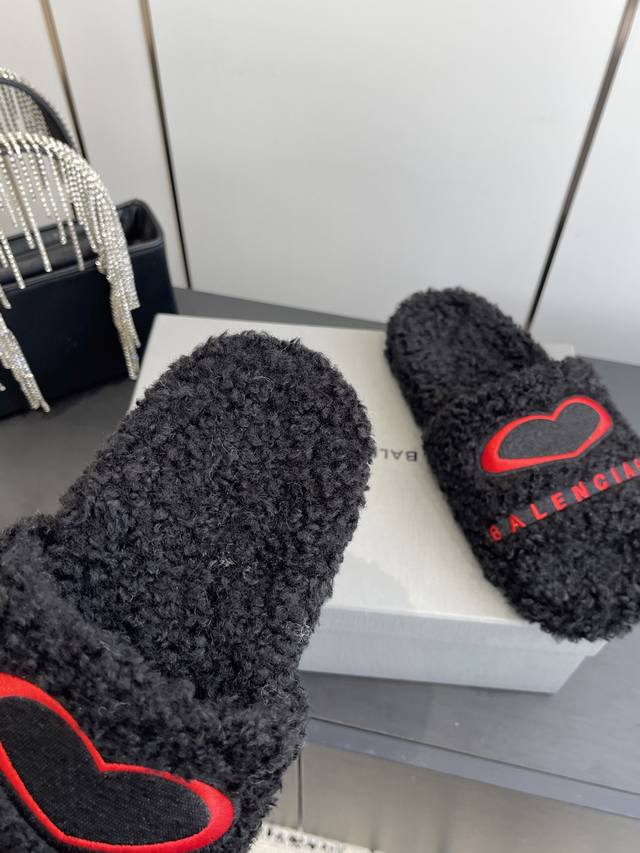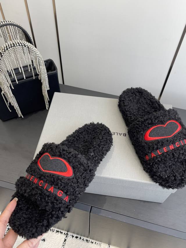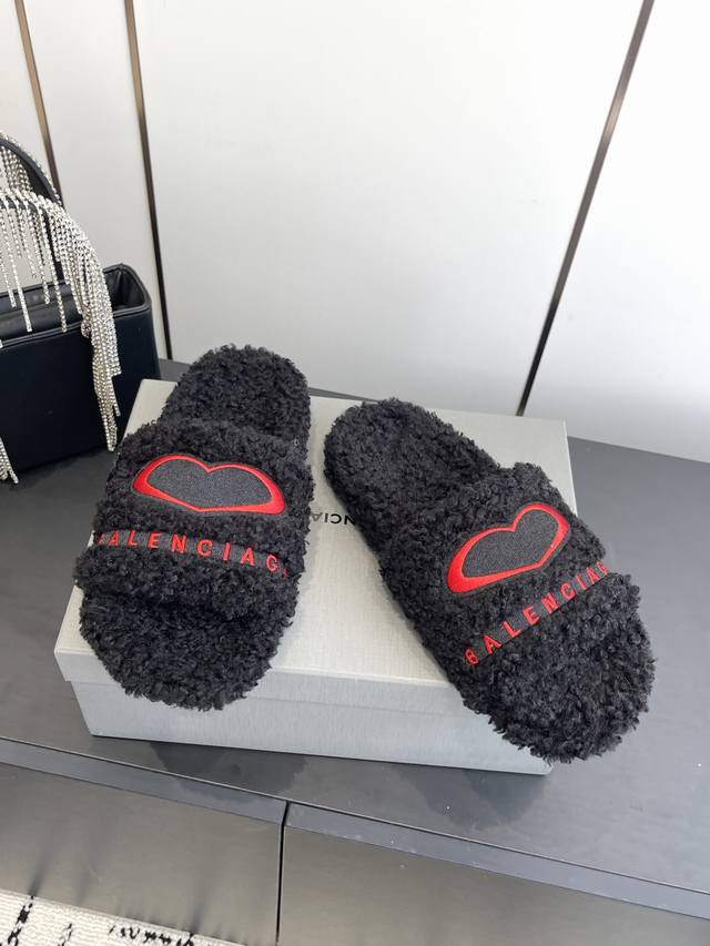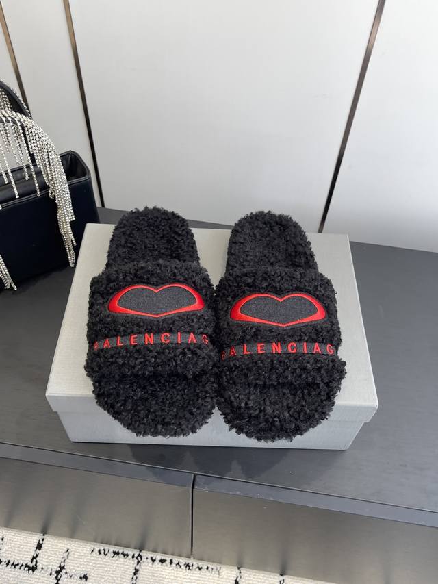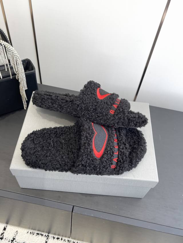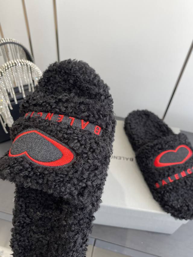 可乐刺绣斜纹磨毛巾布面拖,超火巴黎世家毛拖 高端品质,时装博主与欧美明星大爱款,冬季必备款 时尚却不过分张扬.