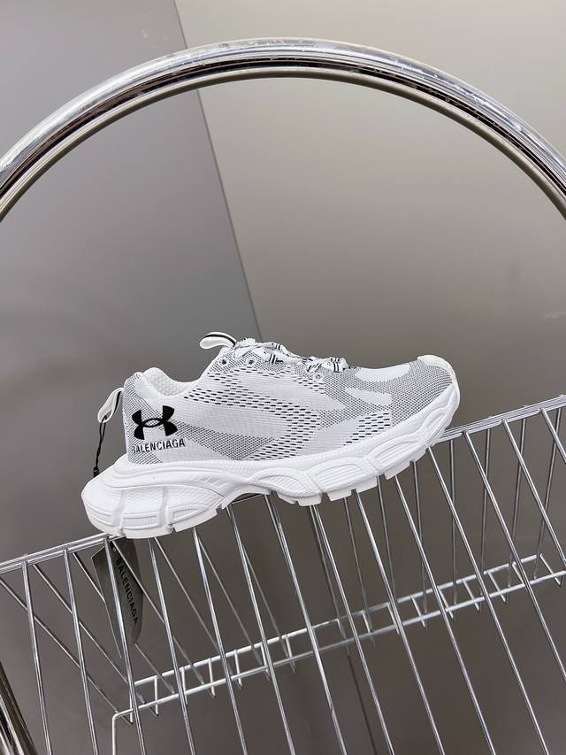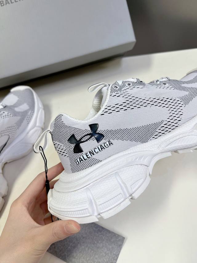 巴黎世家balenciaga&安德玛联名款情侣鞋复古休闲飞织运动鞋 系列推出探索时尚界对于原创与挪用的概念、以全新系列致敬传承与经典,以标志性balenciaga廓形和抽象大底,碰撞出诙谐又和谐的新创意、原版一比一做法、飞织弹力鞋面上脚非常舒服 独家组合大底、正品全套包装、码数:35-45