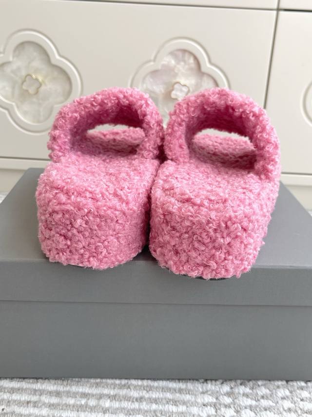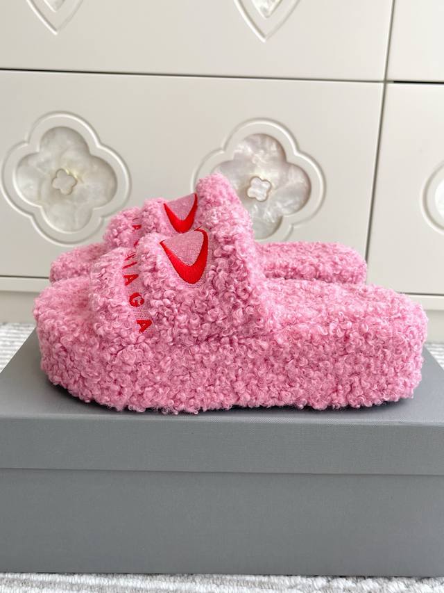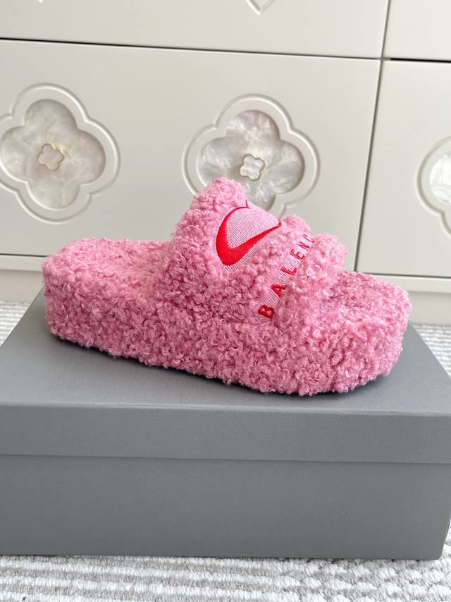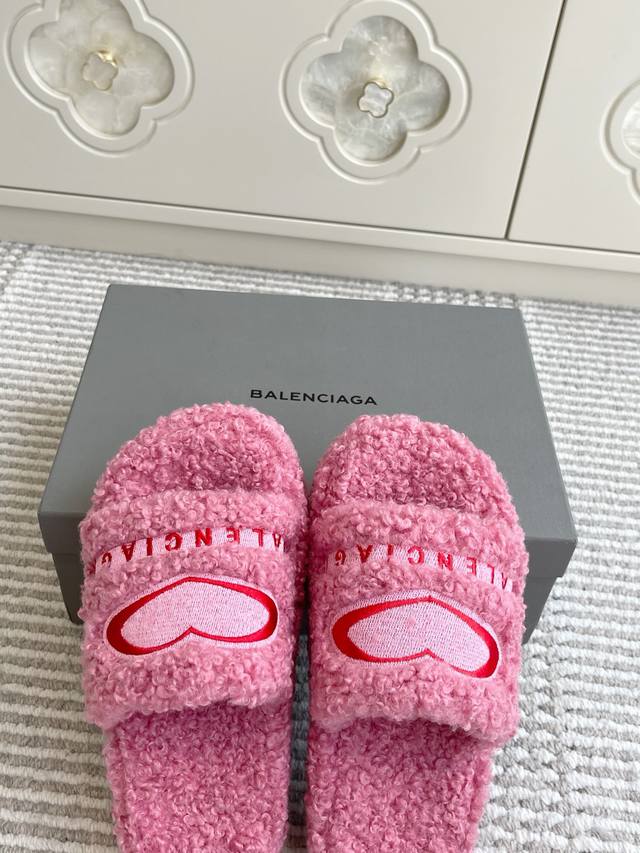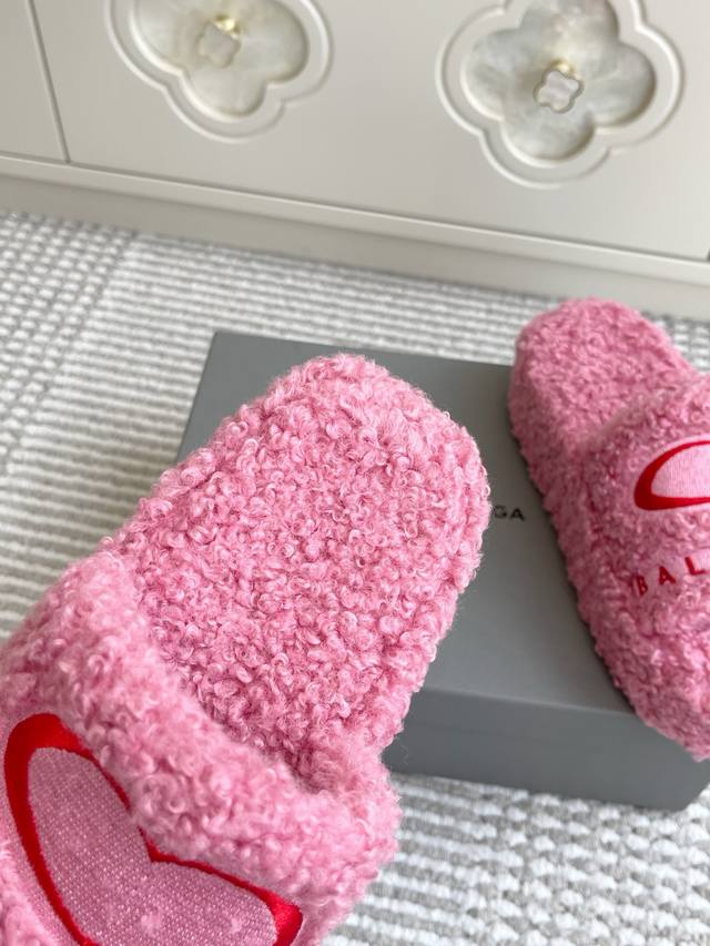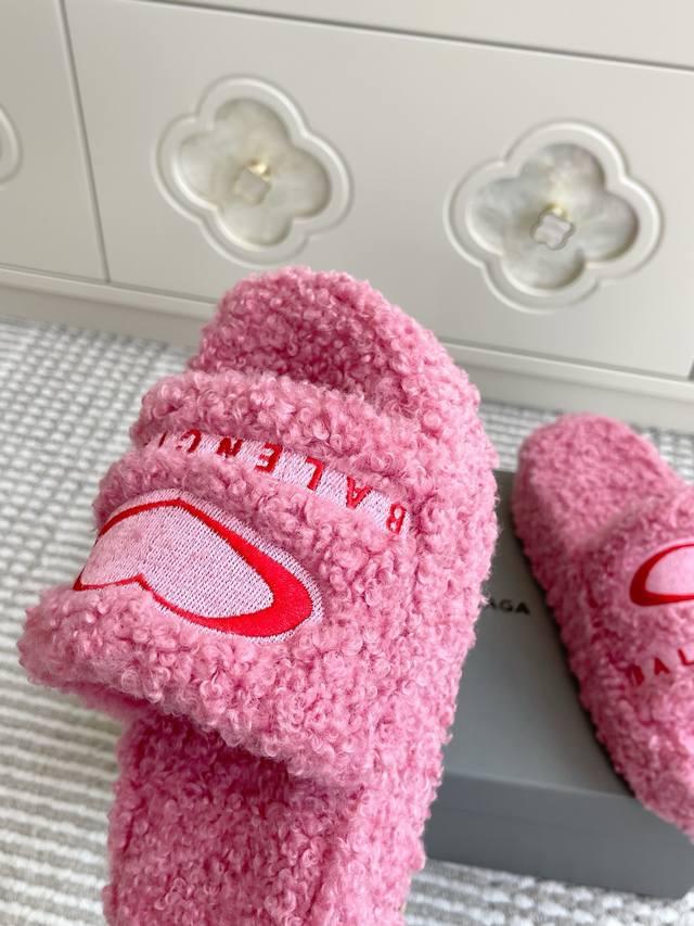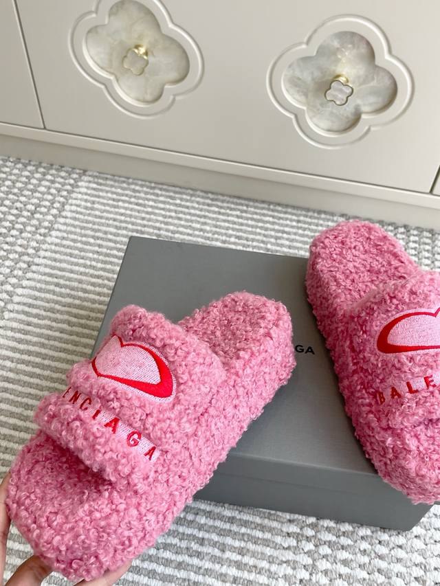 Balenciaga 巴黎世家情侣25Ss 秋冬潮品 爱心厚底毛毛拖鞋