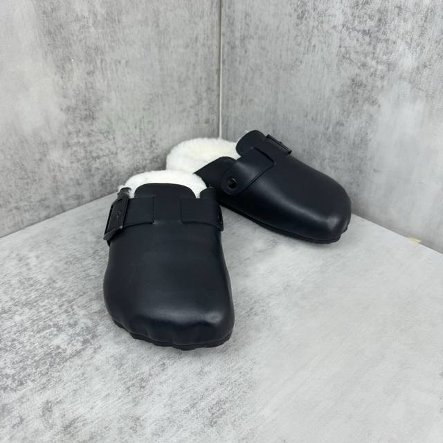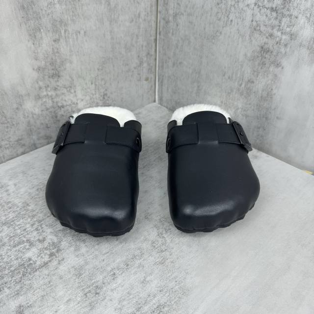 新款上架 Balenciaga 24Ss Sunday 穆勒包头毛毛博肯拖鞋 五指形鞋头 皮革饰带,搭配一枚可调节带扣 搭扣上镌刻balenciaga品牌标识