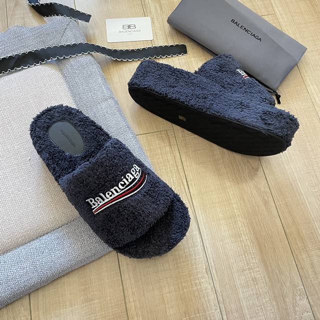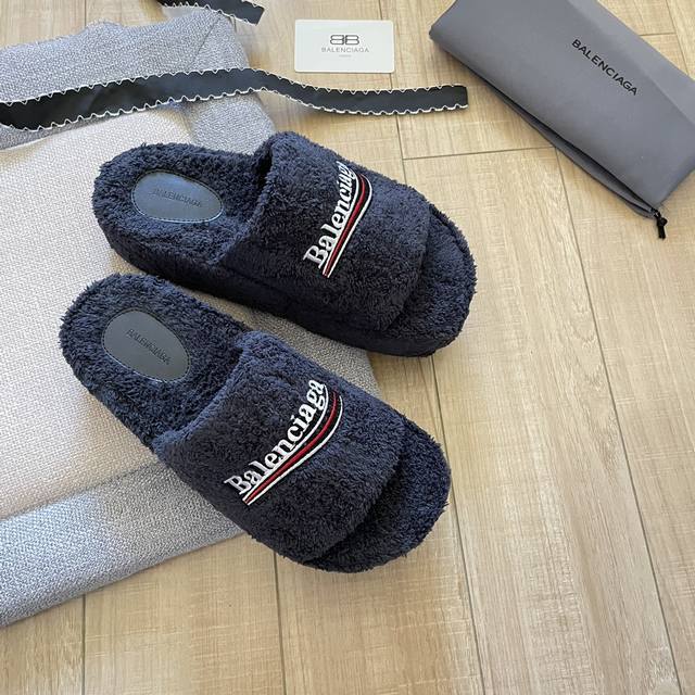 Balenciaga 巴黎世家 秋冬新款厚底毛毛拖鞋