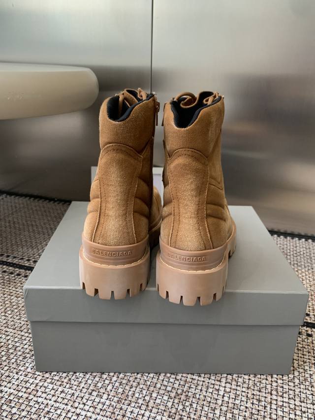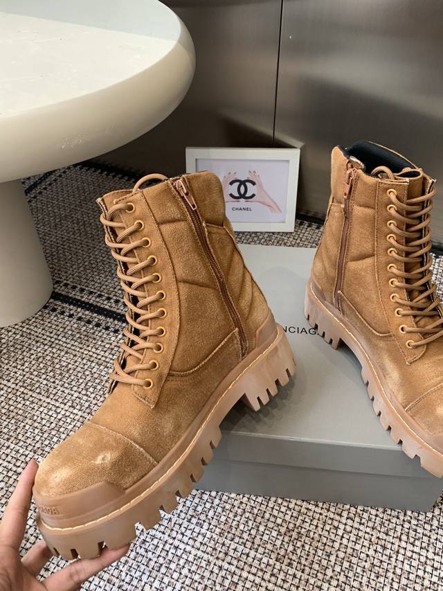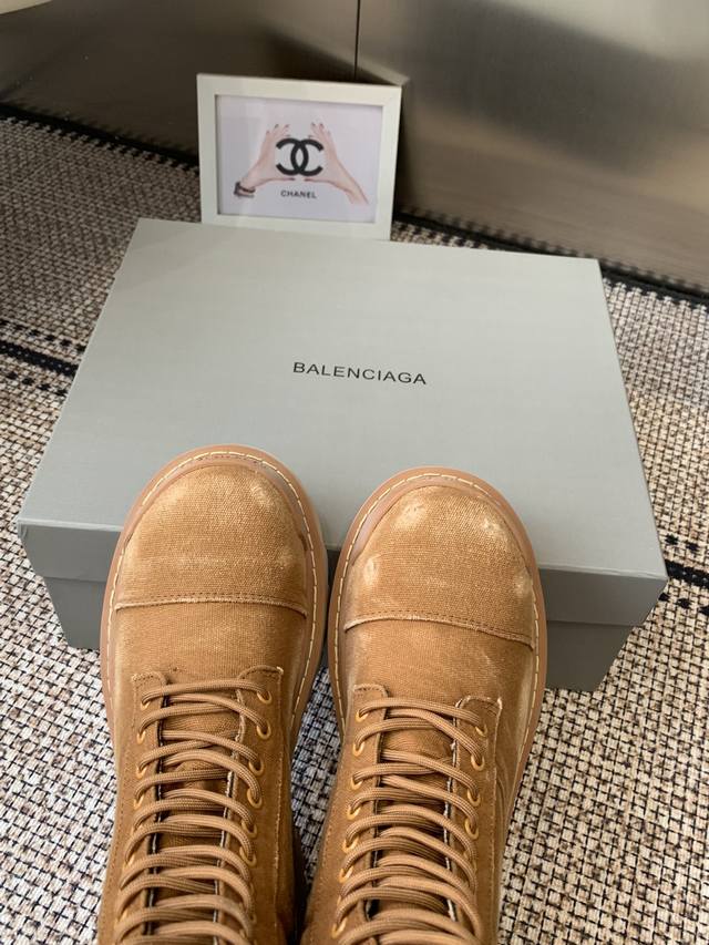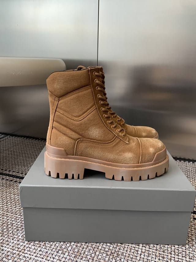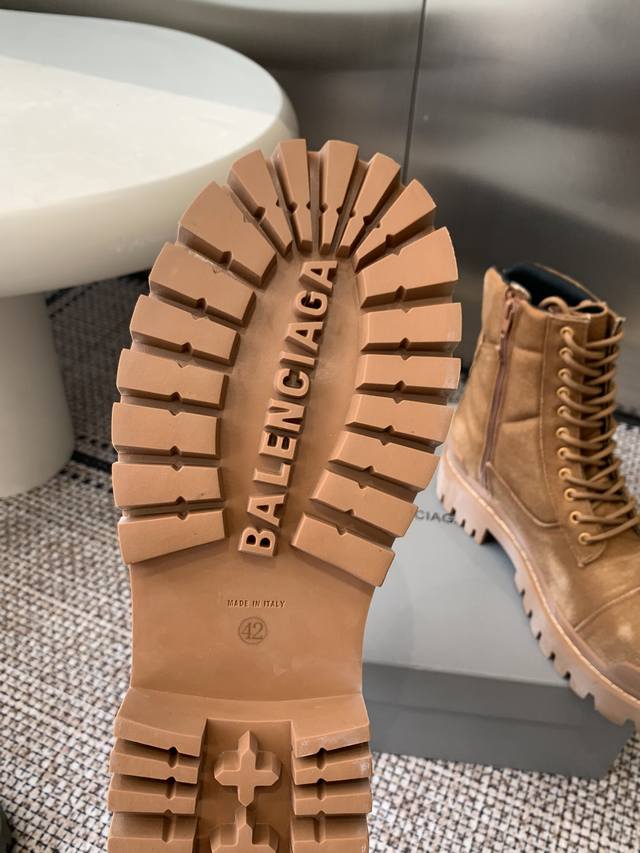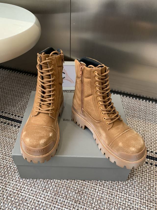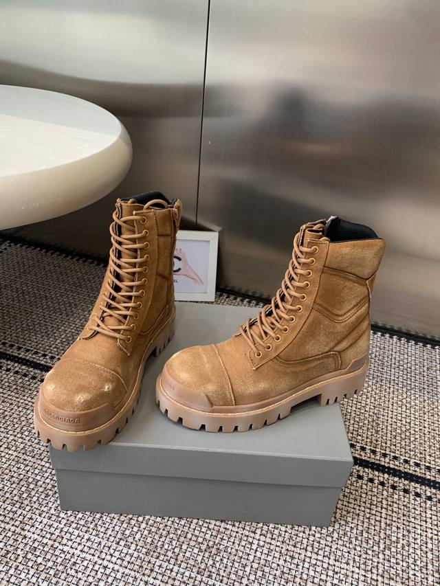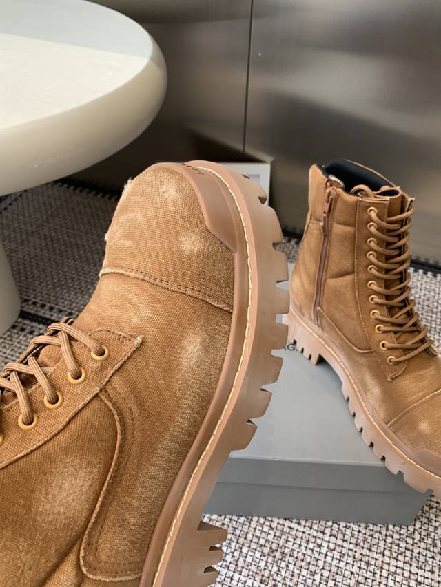 男款 Balenciaga 巴黎世家 Stomper短靴 2025冬季最新爆单款 购入原版开发 大底开模 仿古做旧工艺效果工装系带靴 圆头裸靴侧拉链厚男士底靴 锯齿性原版发泡大底 面料原版织布 垫脚牛皮 里布牛皮 码数:39-46 46定做不退换