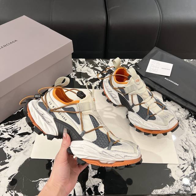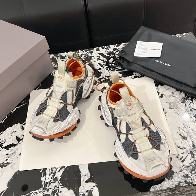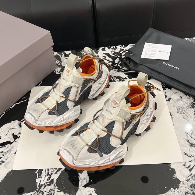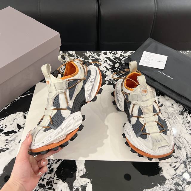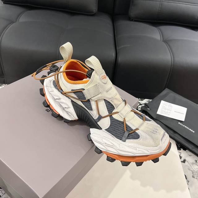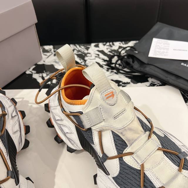 呈现大量使用过的印迹,这是demna'S 反复出现的风格 Sporty B 标志依旧放在鞋舌上!