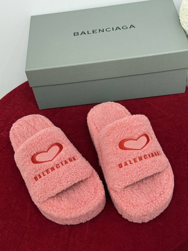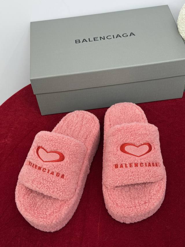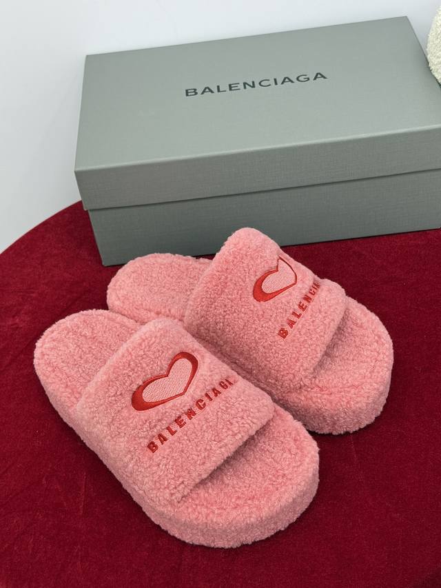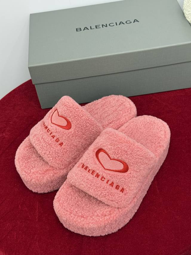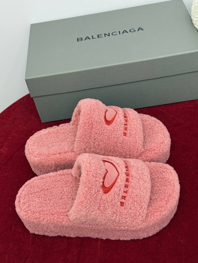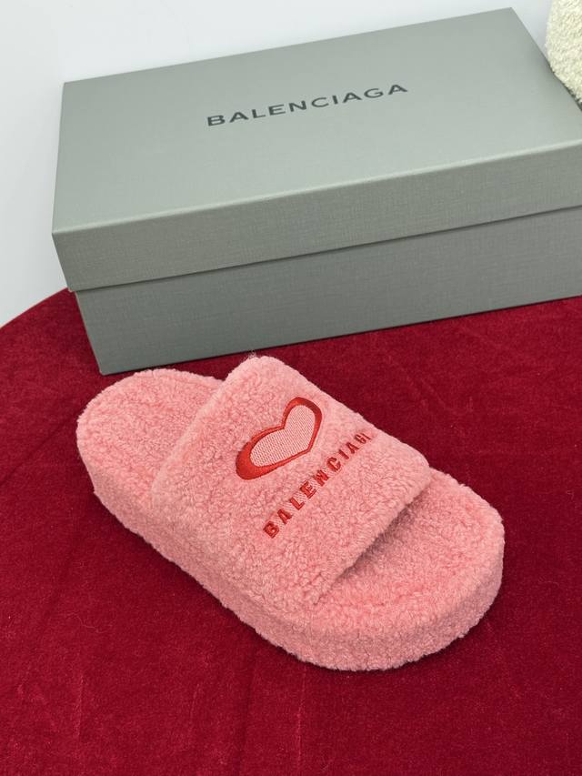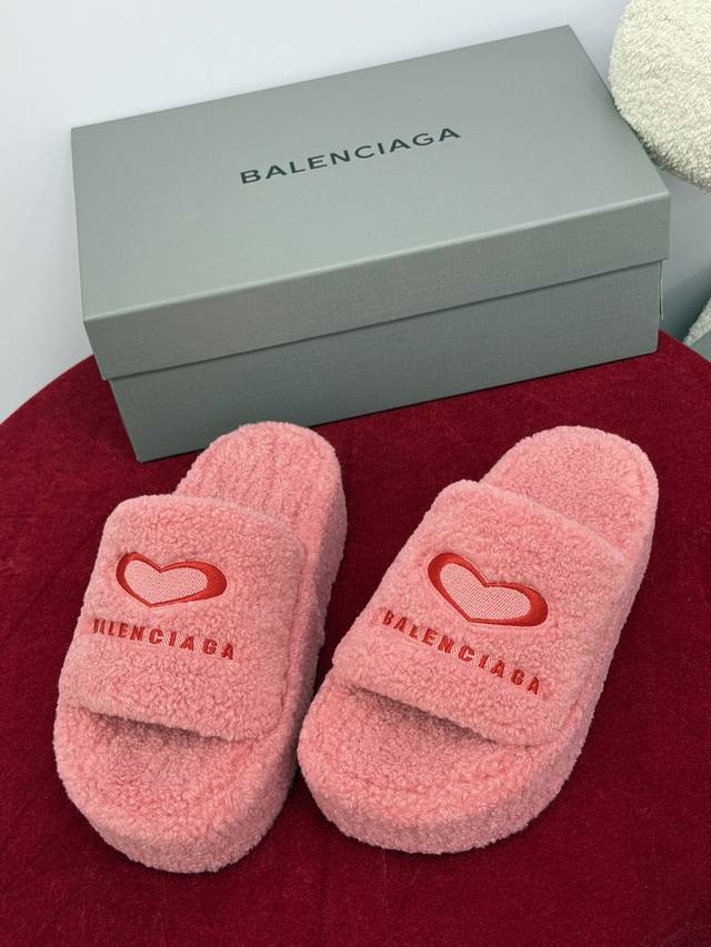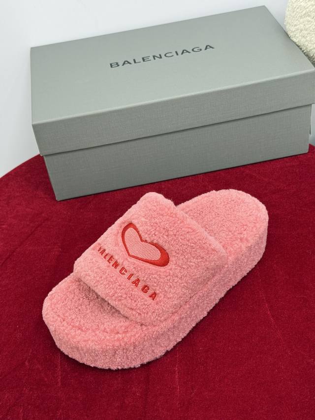 顶级品质 Balenciaga Ss25 New Arrival~ 巴黎世家新款厚底毛拖 鞋面精致Logo点缀+爱心鞋底增高5Cm 穿上秒变大长腿~好看又时髦~