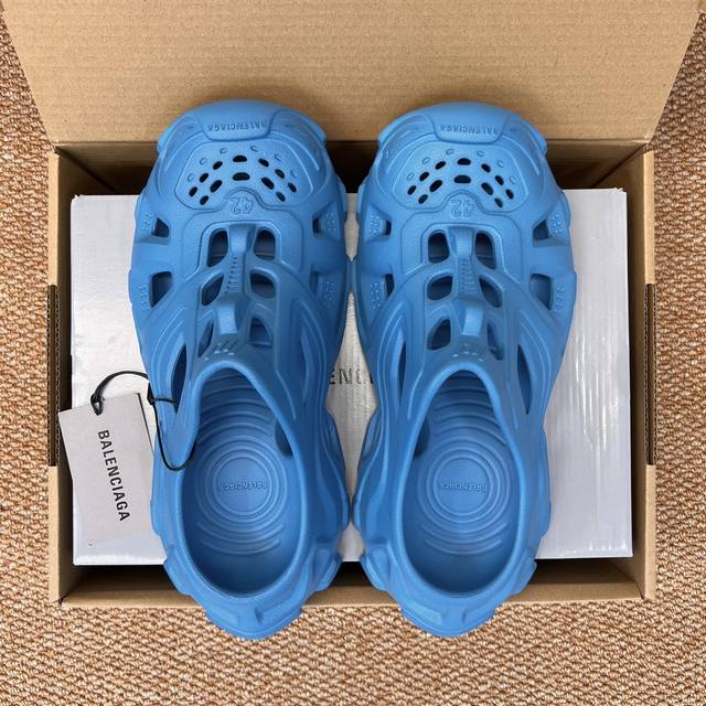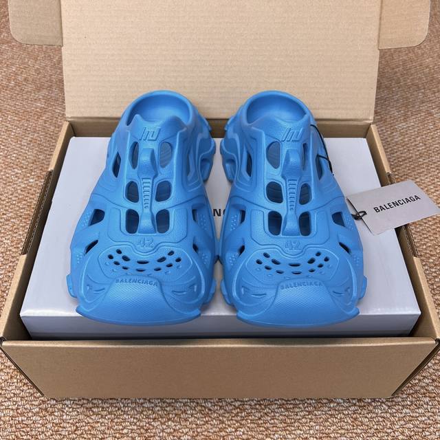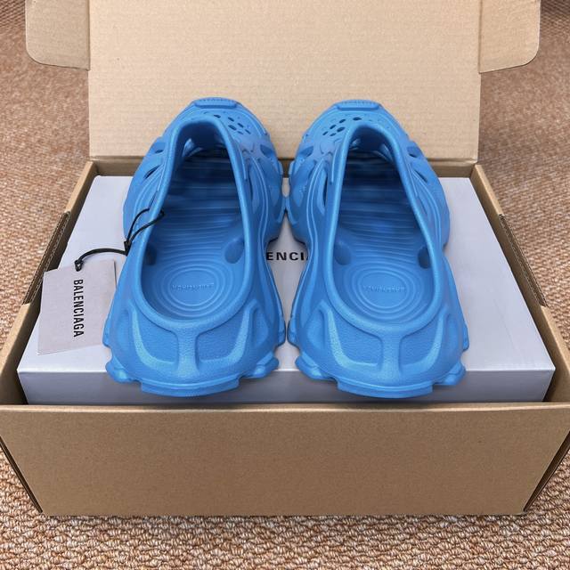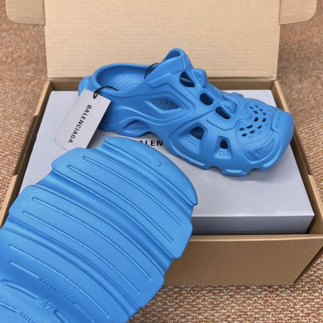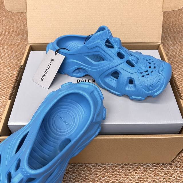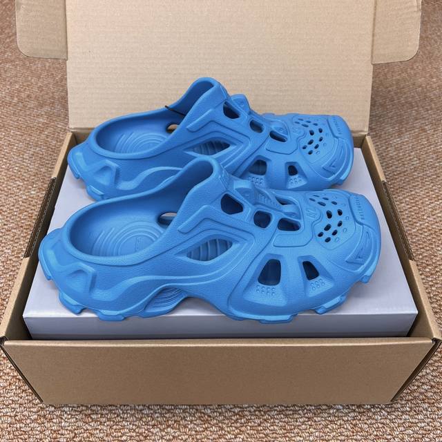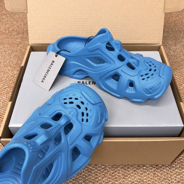 顶级版本 Balenciaga 半拖洞洞凉鞋蓝色!材料采用eva发泡缓震物料注塑一体成型!包装:原吊牌飞机盒加固包装!码数:36-40码
