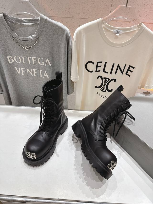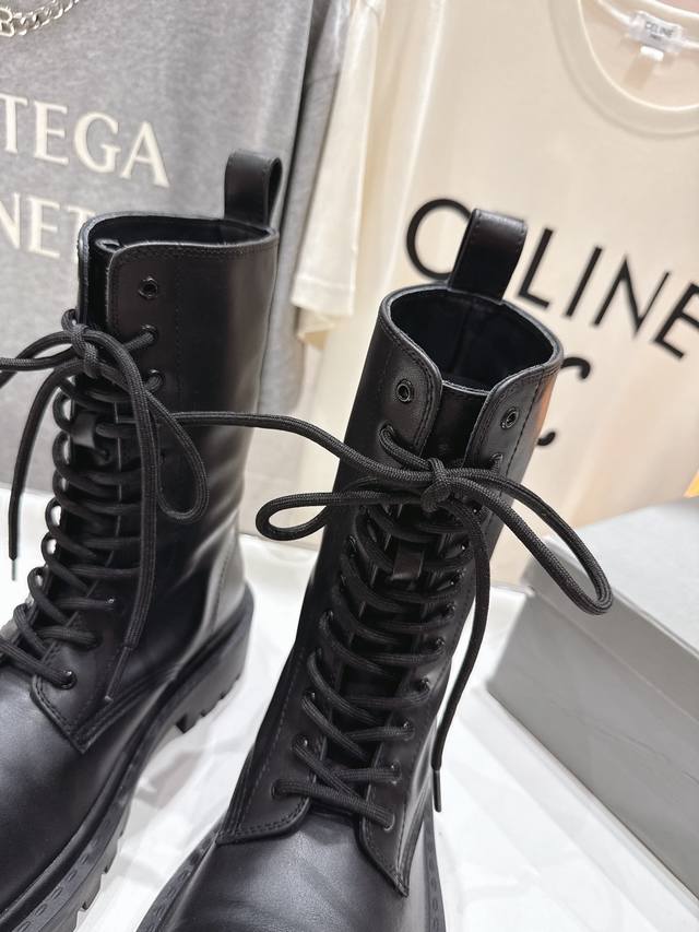 Balenciag*巴黎世家F046 2025Ss秋冬新款绑带中筒机车靴马丁靴