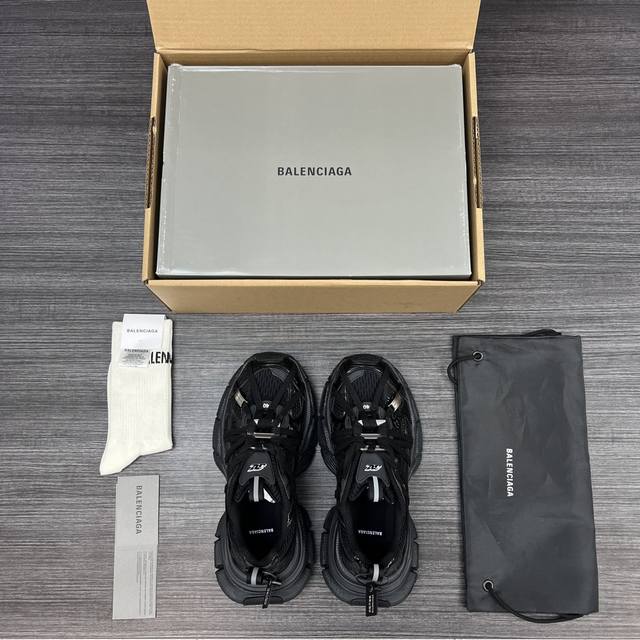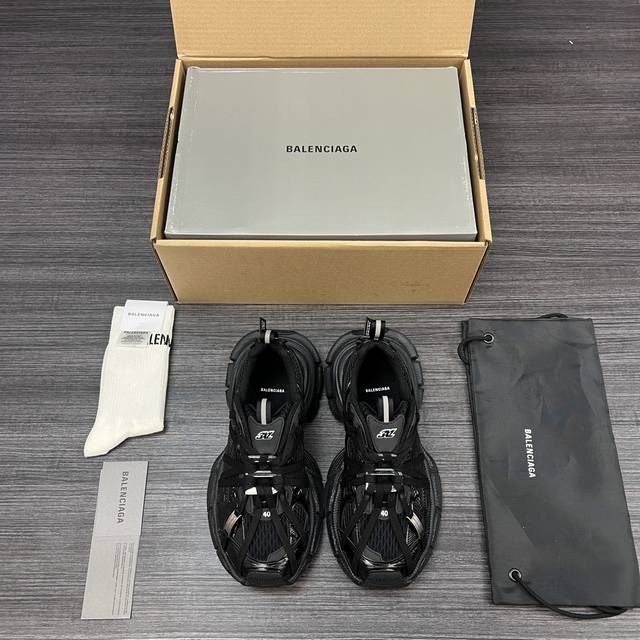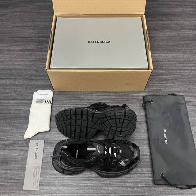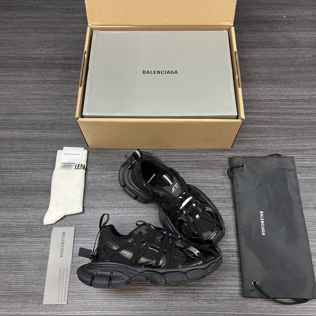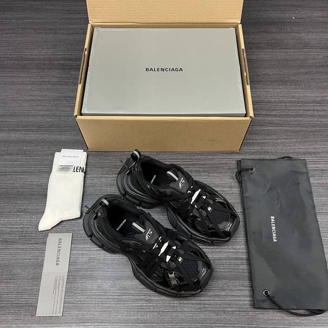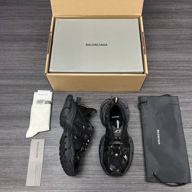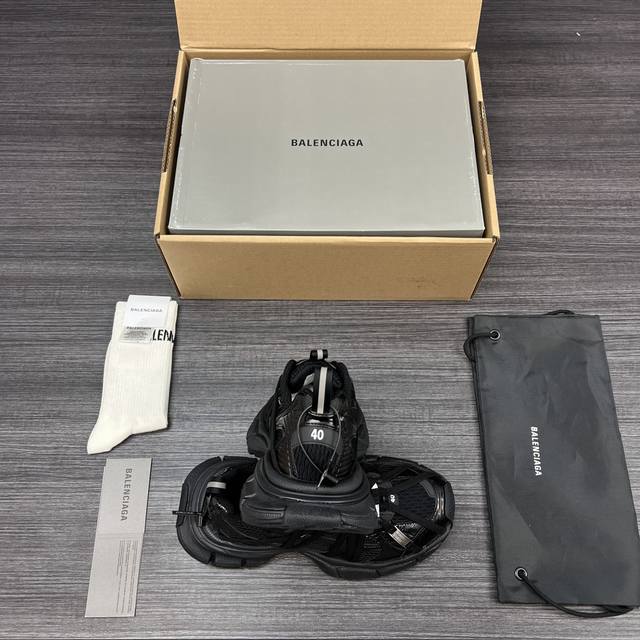 纯原版本Balenciaga巴黎世家 3Xl扣式绑带 圆头系带 低帮 老爹鞋 黑色 在延续 Track Trainer 户外轮廓和复杂鞋面结构的同时,新版本在后跟位置增加了透明带的部件,整鞋看起来更加复古。