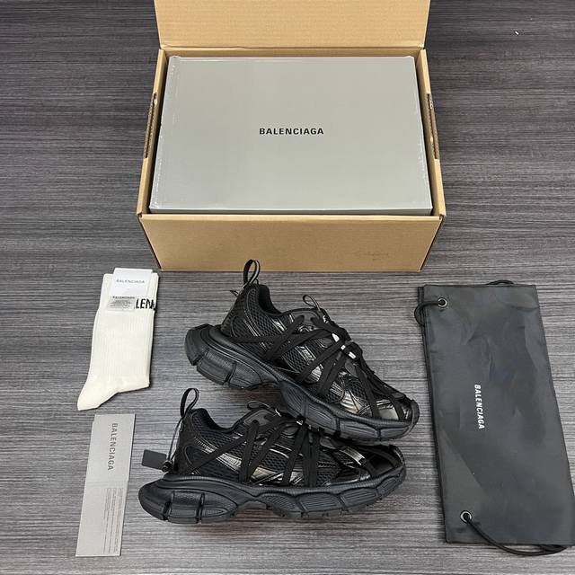 690 纯原版本Balenciaga巴黎世家 3Xl扣式绑带 圆头系带 低帮 老爹鞋 黑色 在延续 Track Trainer 户外轮廓和复杂鞋面结构的同时,新