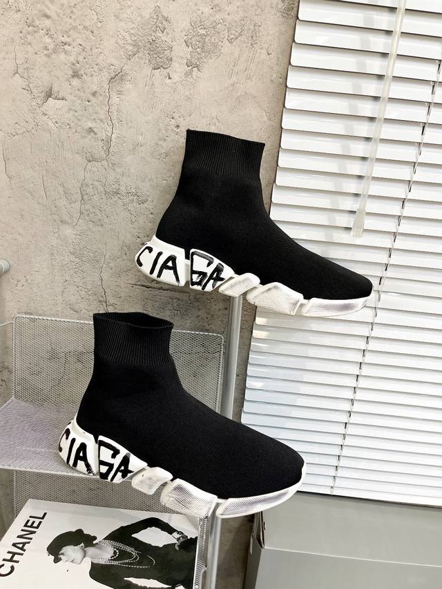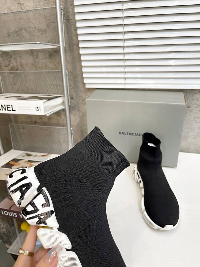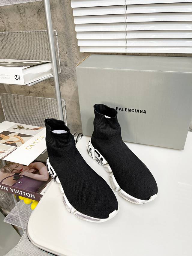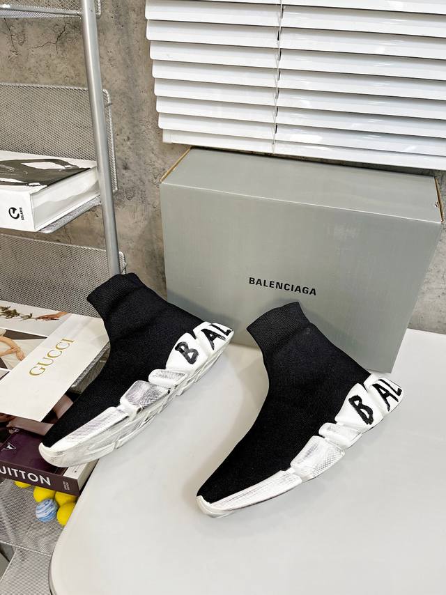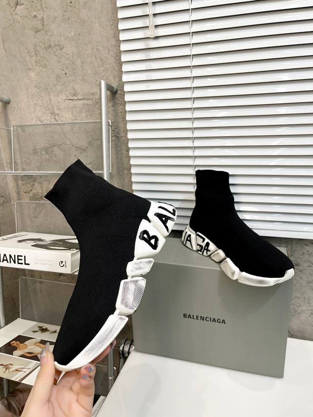 Balehciaga 巴黎世家 经典袜子鞋,顶级版本,出厂价: 原版大底1:1开模,抽真空pu+Tpu大底;采用原厂进口高弹力针织毛线筒,与原版一模一样。鞋重0