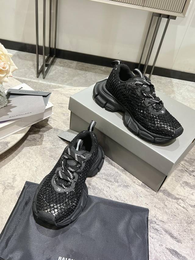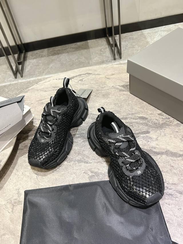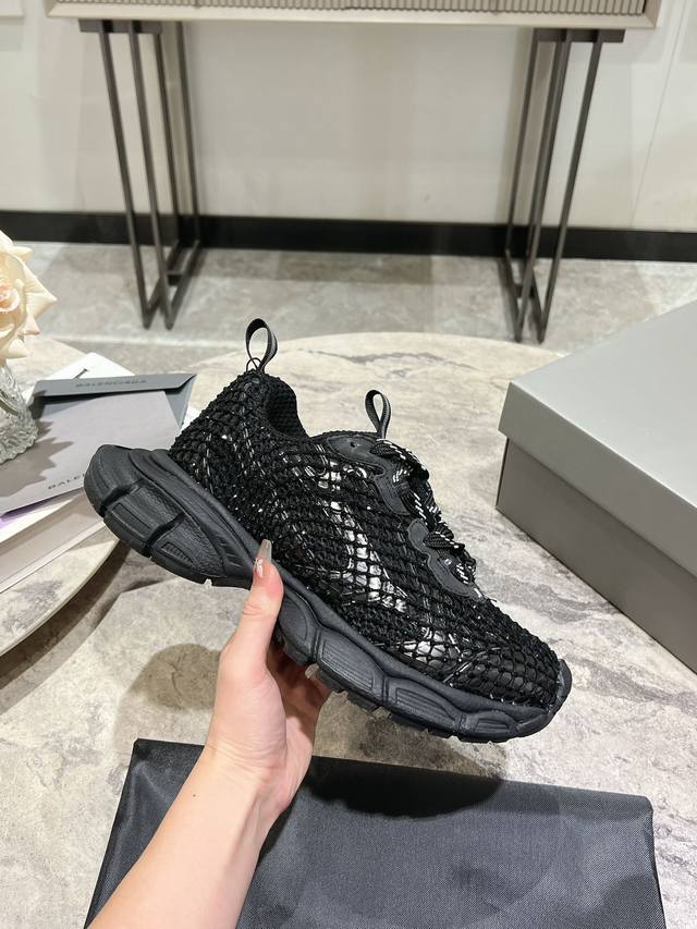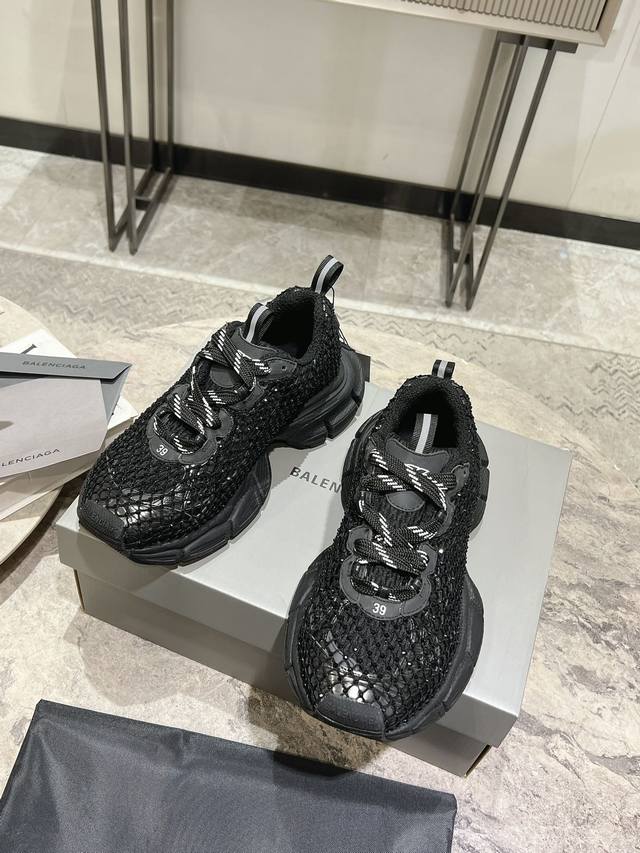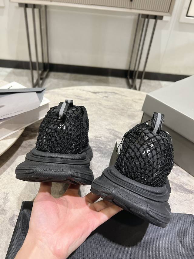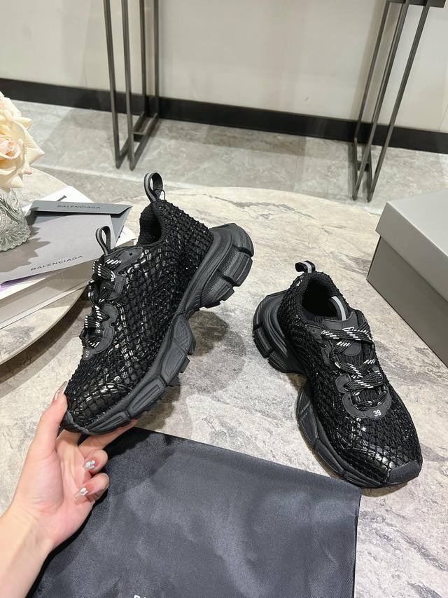 原版rmb12330购入开发 做货 Balenciaga 3Xl Sneaker 整体鞋型汲取了balenciaga Track和balenciaga Runner两款鞋型的创作思路 相当于把 Track鞋身的外框拆了下来 同时继承了 Runner的流线造型和 Track扁平的鞋头。在鞋面全身加了网纱钻 Bingbing超级闪