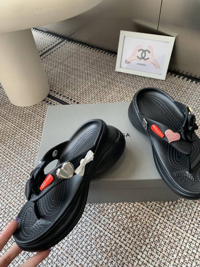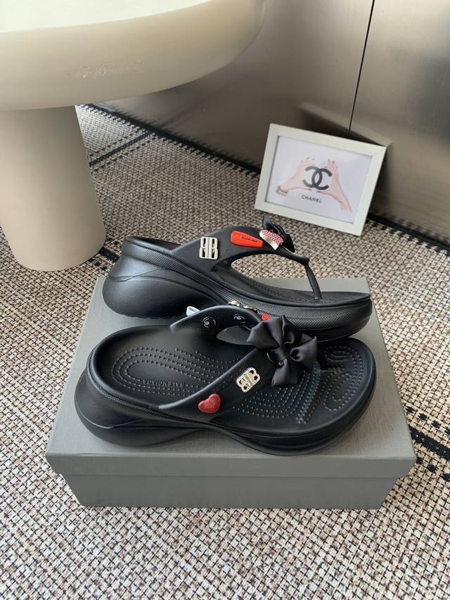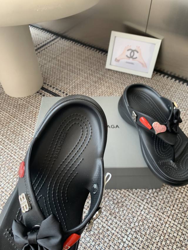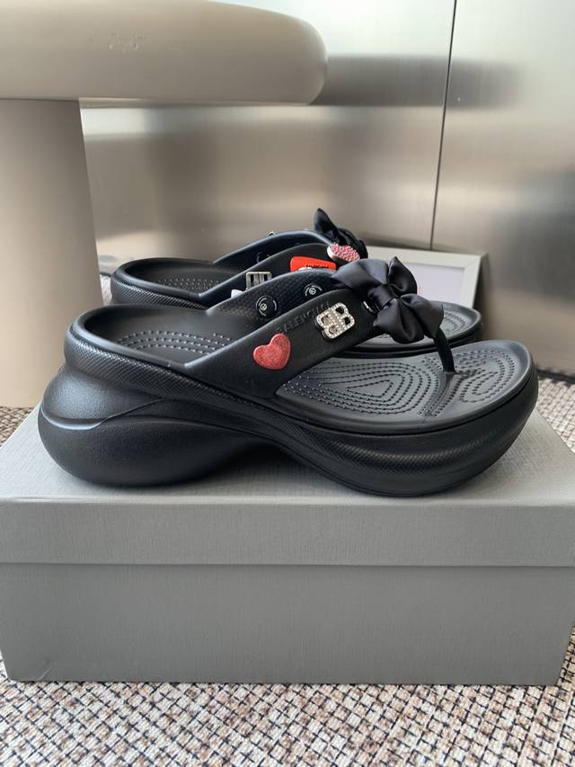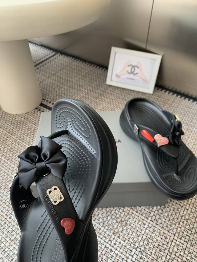 Balenciaga巴黎世家25Ss夏季新款 蝴蝶结夹脚厚底凉拖