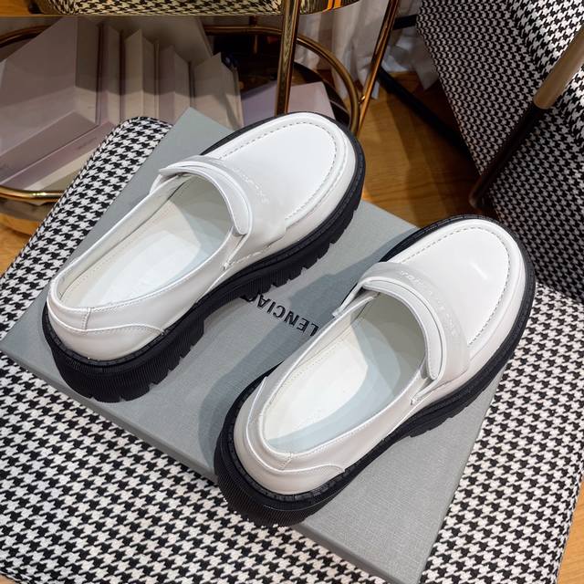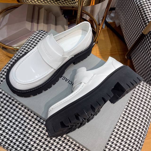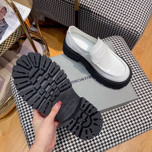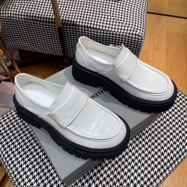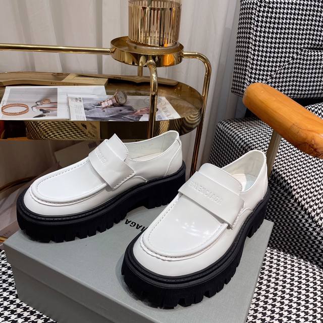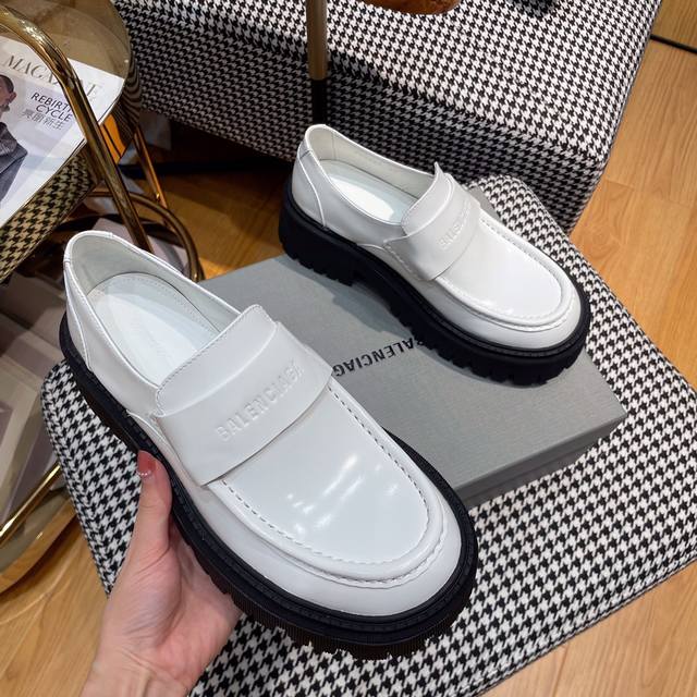 balenciaga 巴黎世家 素面清新乐福鞋 拥有不羁感 日常百搭,摩登,逆风,性冷 牛皮开边珠面料,羊皮内里垫脚,印字Logo橡胶厚底,Size 35-39