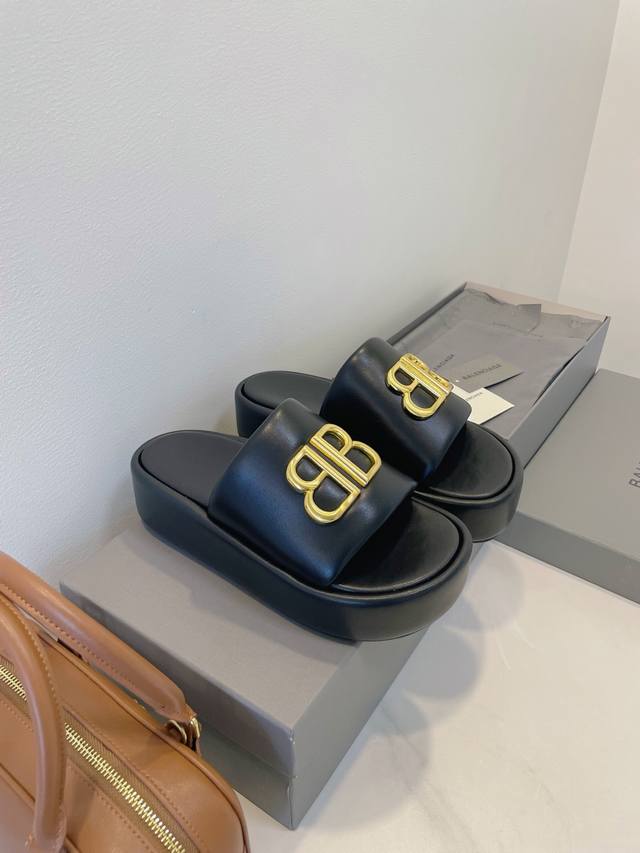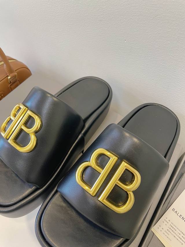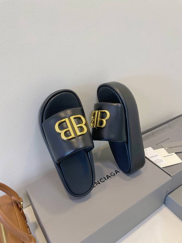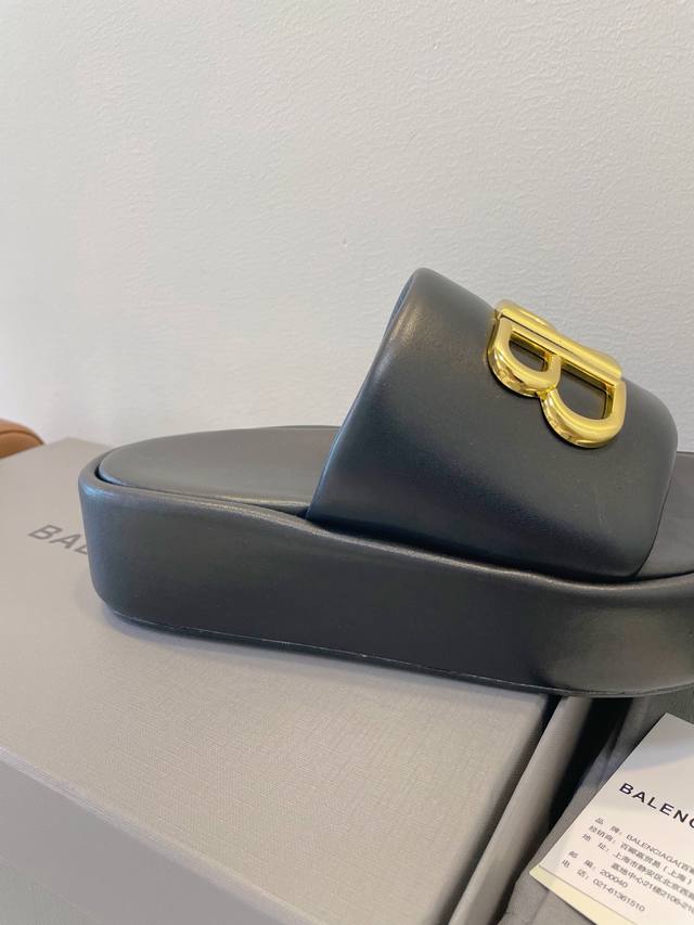 / Balenciaga 巴黎世家 经典元素 清新面包托鞋 拥有不羁感 2025日常百搭,摩登,逆风,性冷,厚底增高,柔软小牛皮材质,原版印字Logo橡胶大底,Si