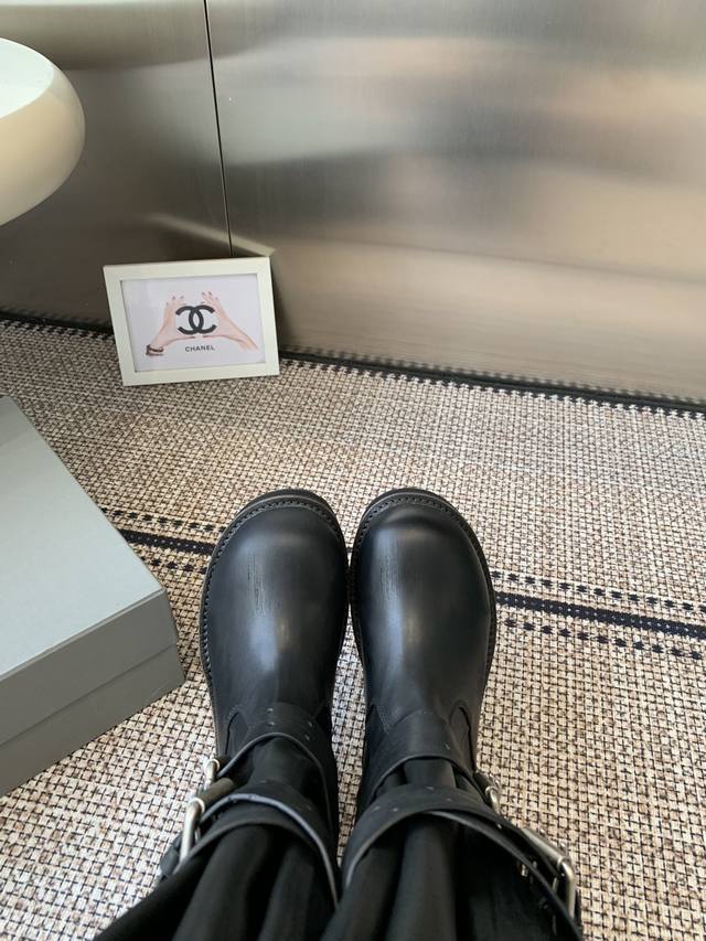 液靴的设计极具辨识度 利落的线条搭配金属扣饰 每一处细节都彰显着的前卫态度 皮革质感上乘,光泽内敛却又奢华尽显,脚感更是舒适与格调并存
