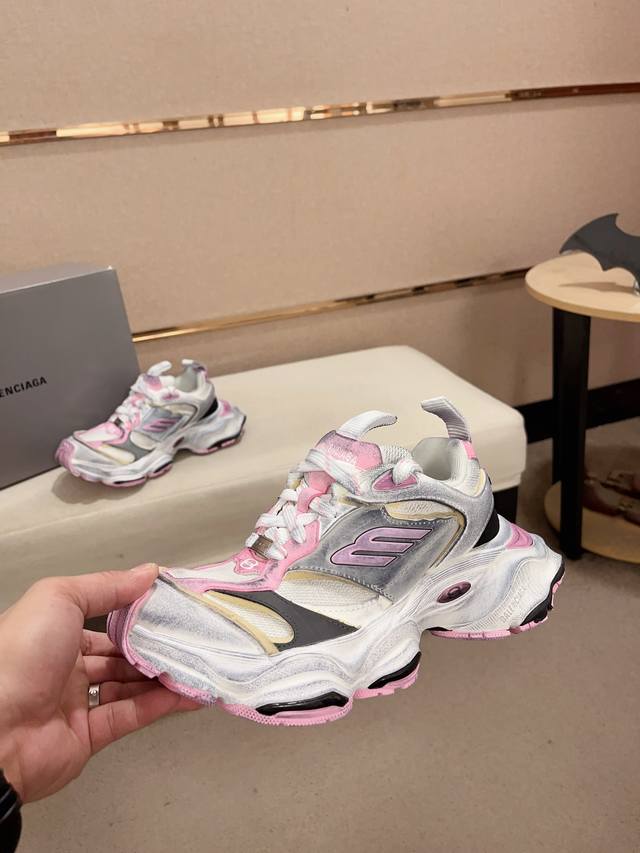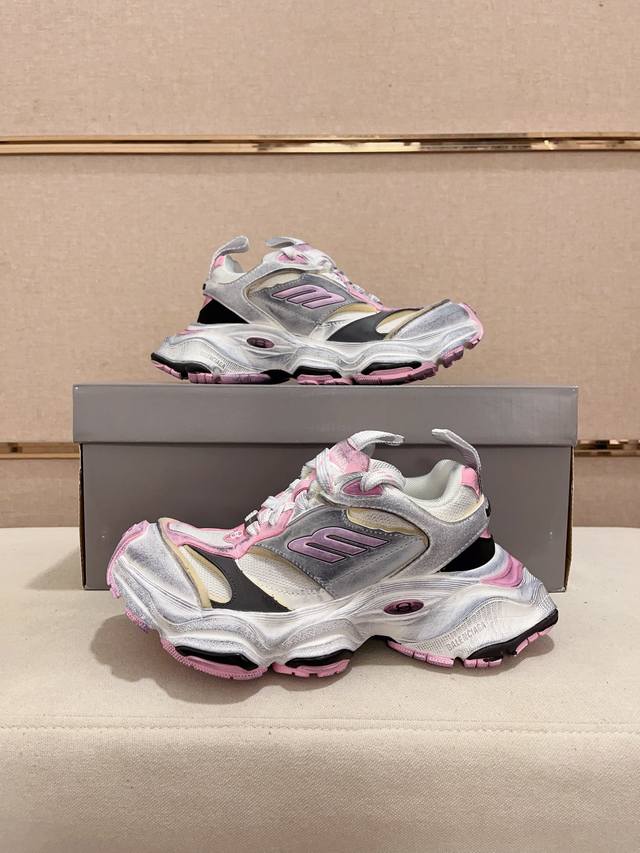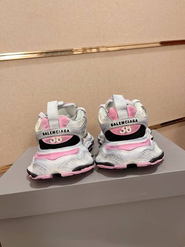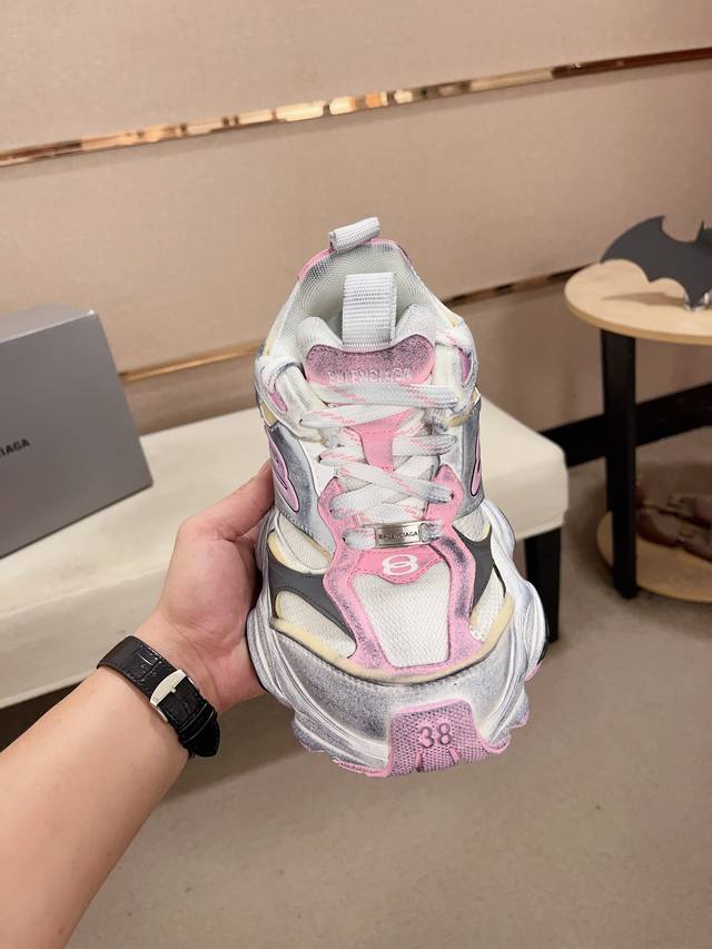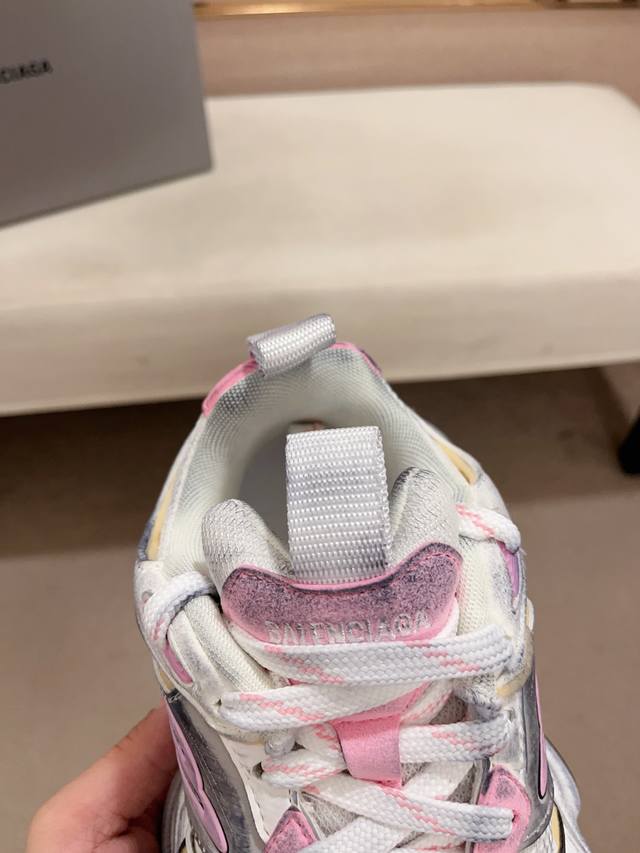 做旧工艺采用手工制作完成,每款鞋的做旧程度、擦破大小及范围具有一定的差异性,属于正常。鞋面是切割的密度高进口海绵填充,鞋舌刺绣Balenciaga字样,还有小刻牌细节,单单这个饰牌都是单独模具开发,侧面还有3M反光材质 后跟的立体logo跟尺码标志,配件防尘袋及附送鞋带升级加厚鞋盒 ,全部采用原档案原楦数控开发1:1比例克重 原装EVA环保去臭环型
