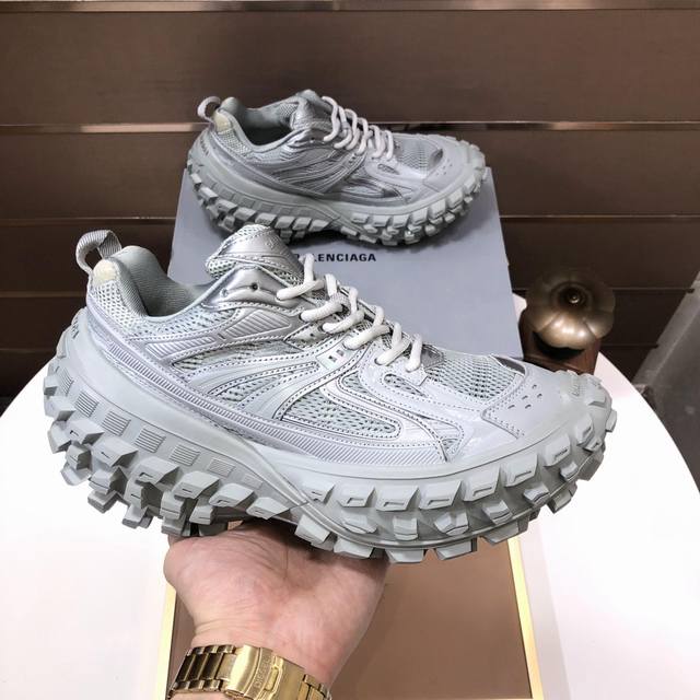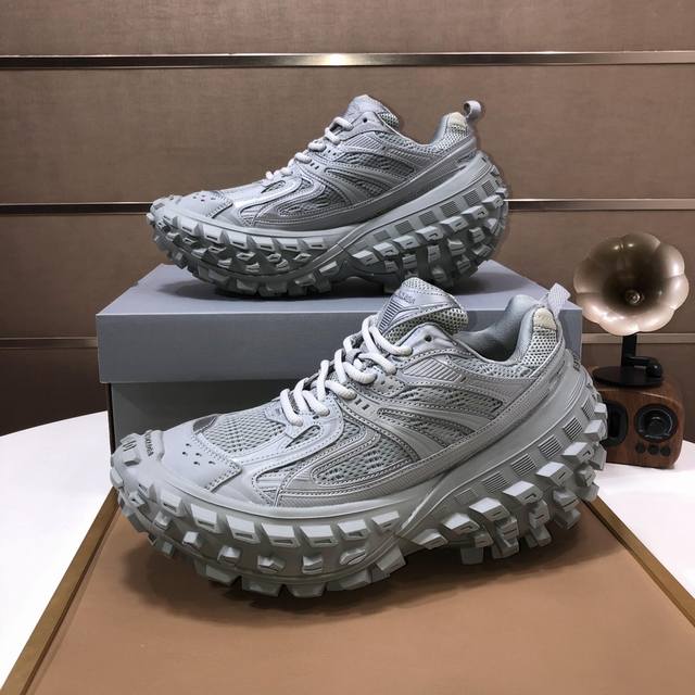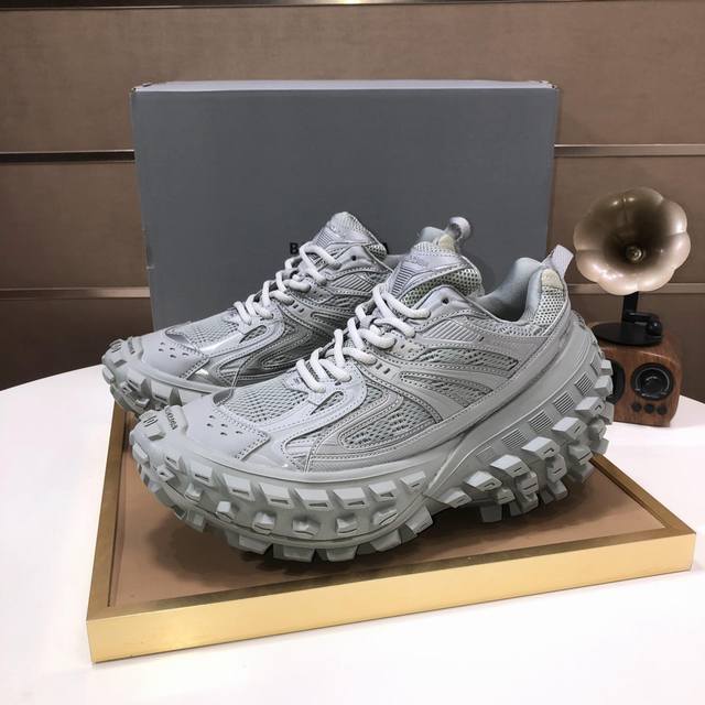 东莞原厂原原楦原纸版开发版型 原版一致配件防尘袋及附送鞋带 1:1比例克重 全掌pu乳胶鞋垫及外观轻度磨损做旧效果 全新开发7层组合夸张轮胎花纹鞋底底部