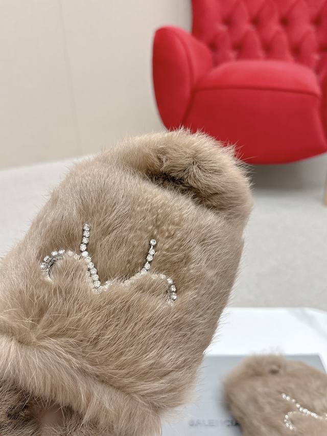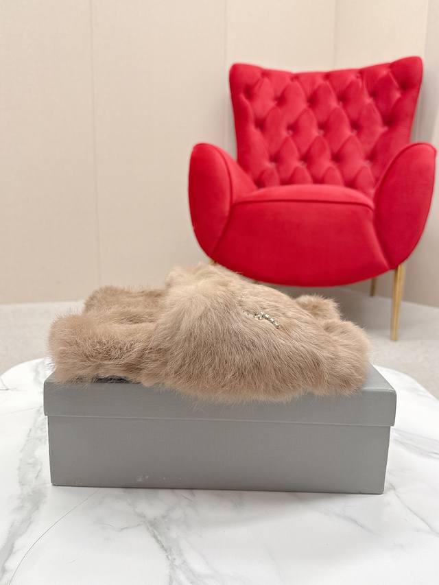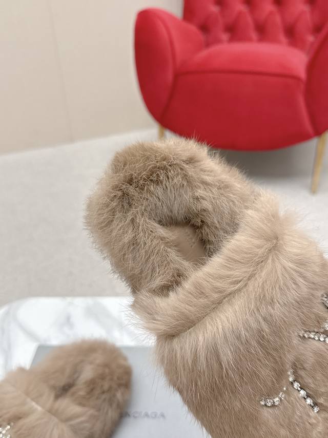 Balenciag*25S秋冬新款 时尚美鞋毛绒尾巴猫跟毛拖