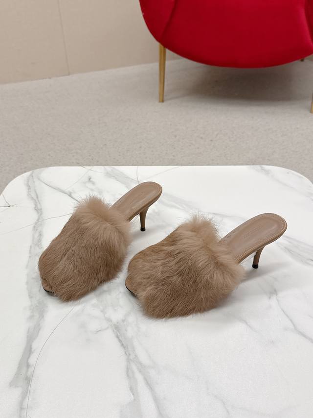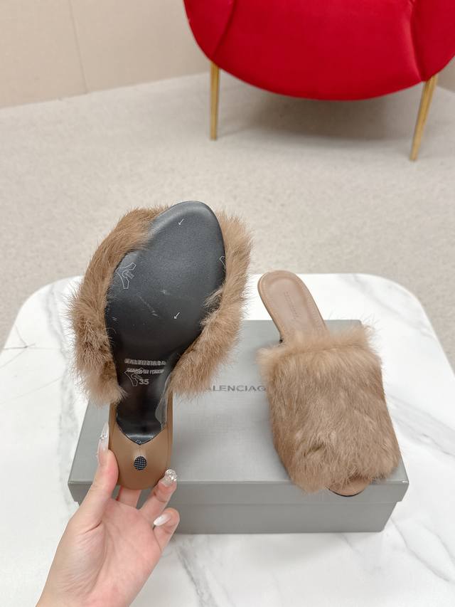 Balenciag*25S秋冬新款 时尚美鞋毛绒尾巴猫跟毛拖