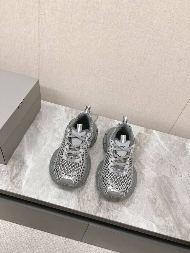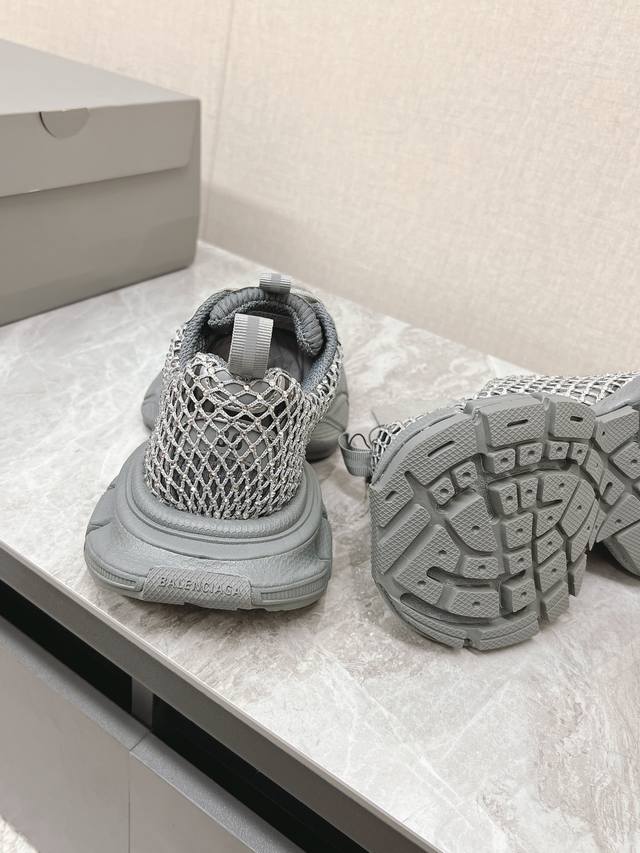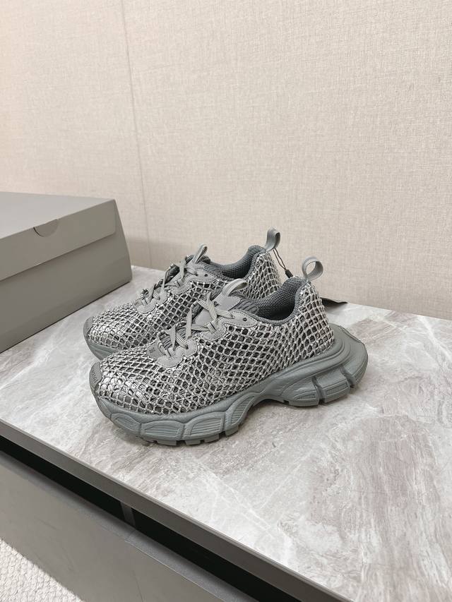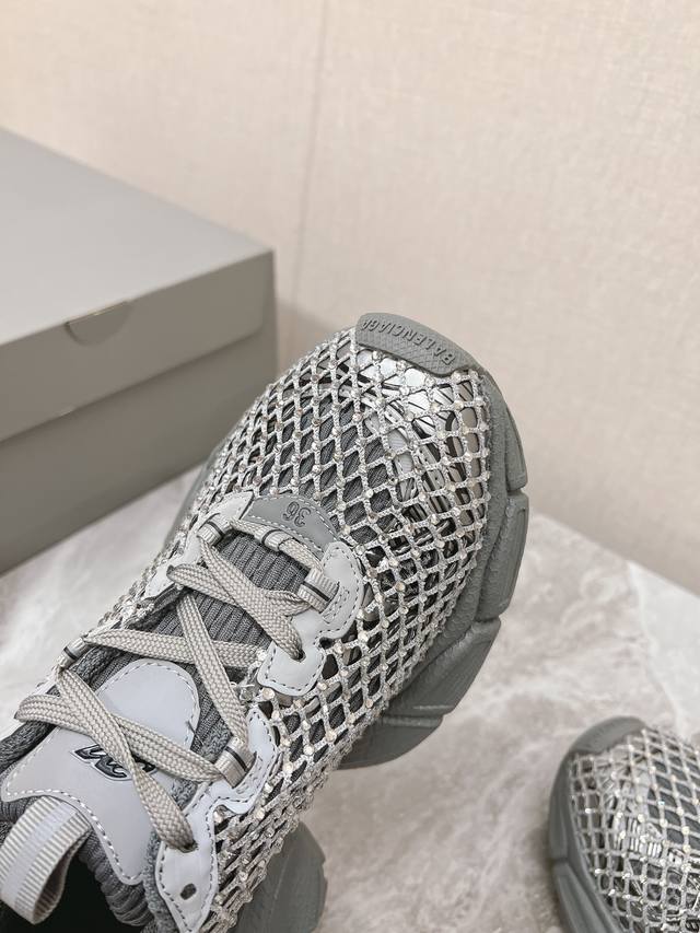 原版rmb12300购入开发 做货 Balenciaga 3Xl Sneaker 整体鞋型汲取了balenciaga Track和balenciaga Runner两款鞋型的创作思路 相当于把 Track鞋身的外框拆了下来 同时继承了 Runner的流线造型和 Track扁平的鞋头。在鞋面全身加了网纱钻 Bingbing超级闪
