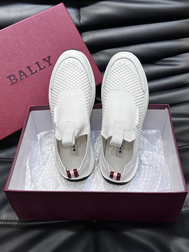 / 出厂价 实价 Bally巴利男士春夏休闲运动懒人穿脱一脚蹬,专柜在售新款,采用进口飞织透气鞋面,面料柔软细腻舒适透气,鞋面饰以b家经典字母logo设计,手工缝线