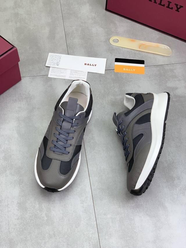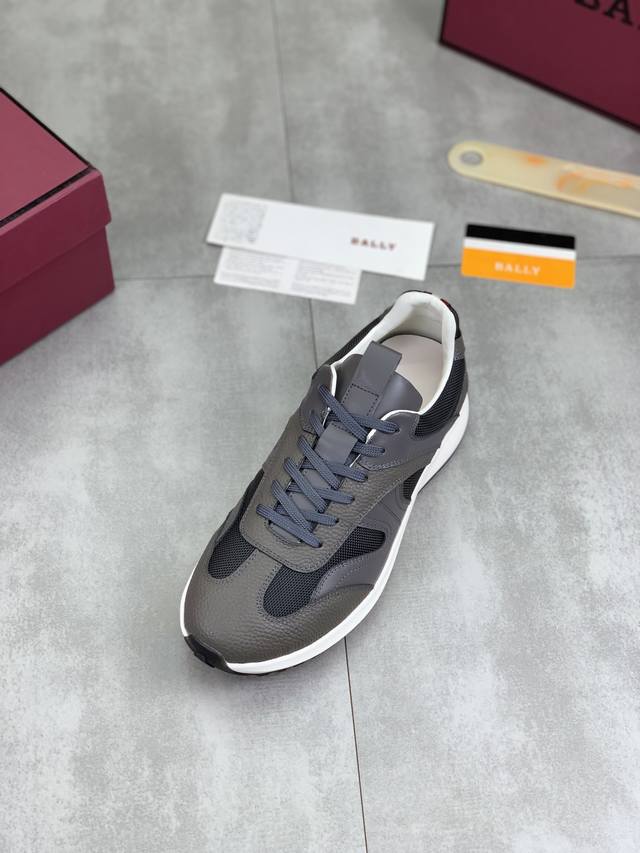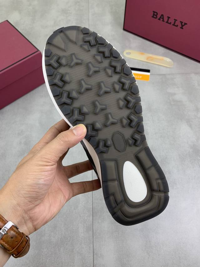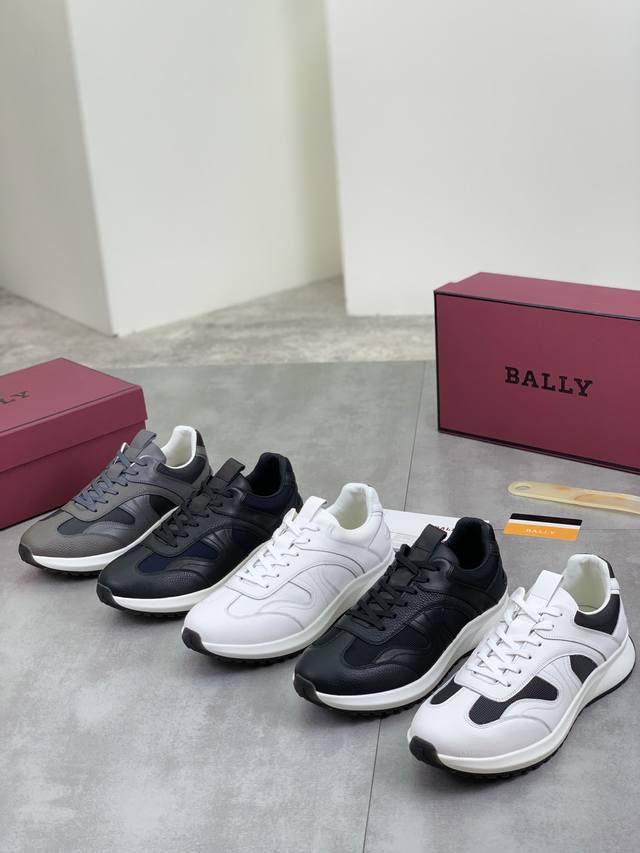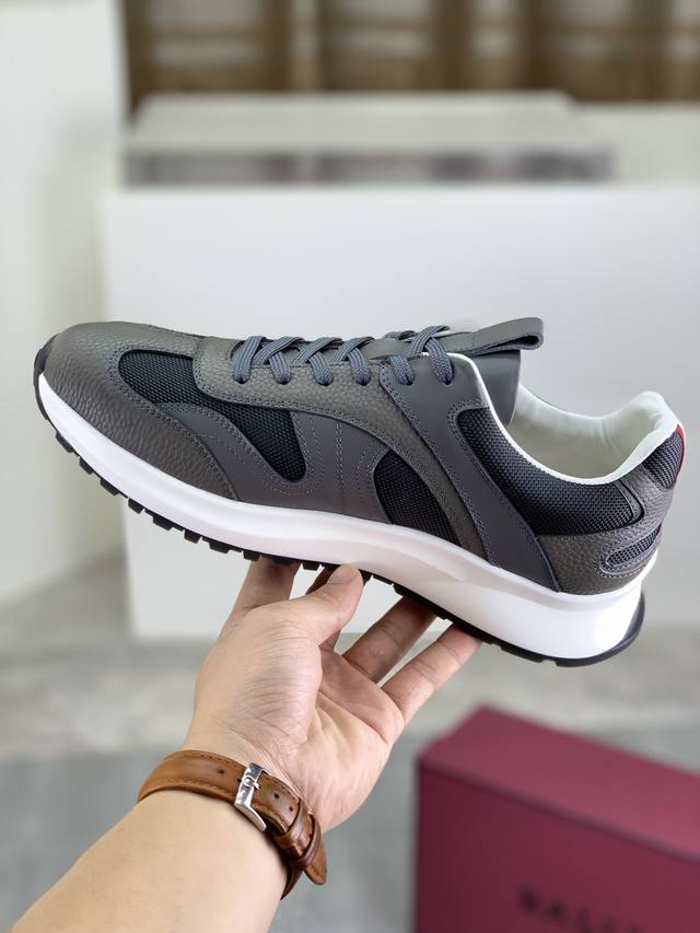 原版购入开发 做货 巴利家男士经典系列 科技透气面料搭配牛皮 休闲运动鞋 休闲之履运动老爹鞋结合高科技透气材质与牛皮,侧面B家专属红白织带装饰 大底满满斜体设计和鲜艳色彩展现活力,延续品牌设计灵感。轻盈漫步都市,感受无拘舒适。