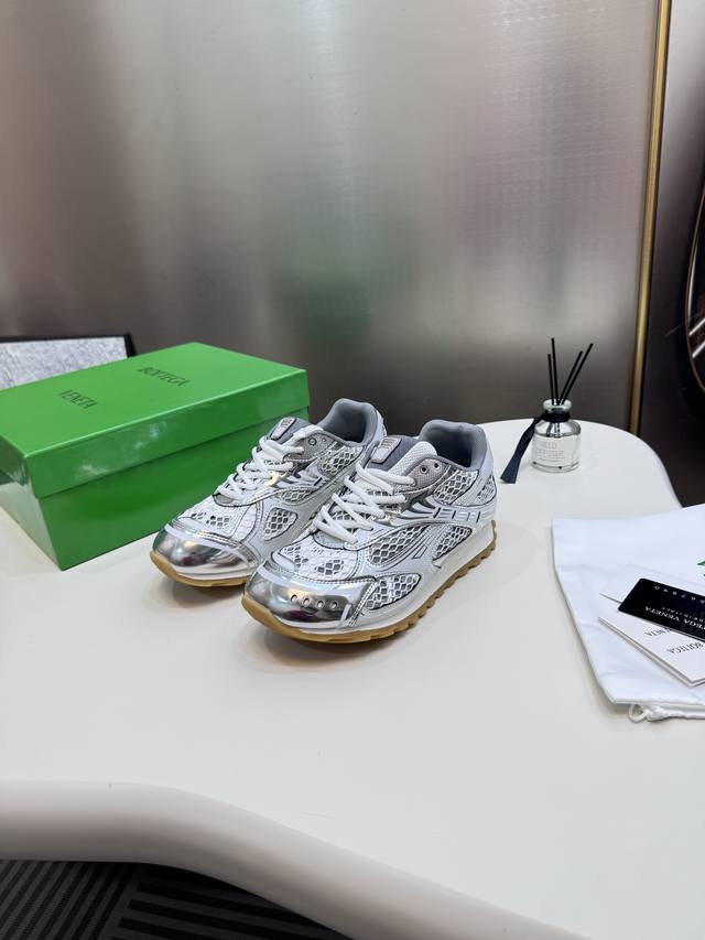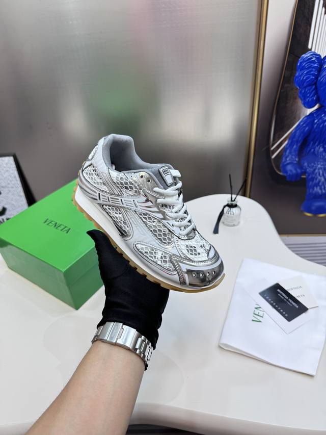 出厂: 高版本 银色有男码41-44 Bottega Veneta葆蝶家23Ss秋冬秀款bv Orbit运动鞋 王一博 同款 情侣款休闲鞋老爹鞋!Runner运
