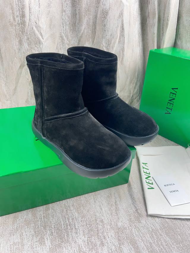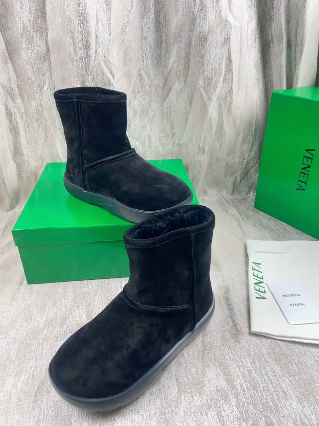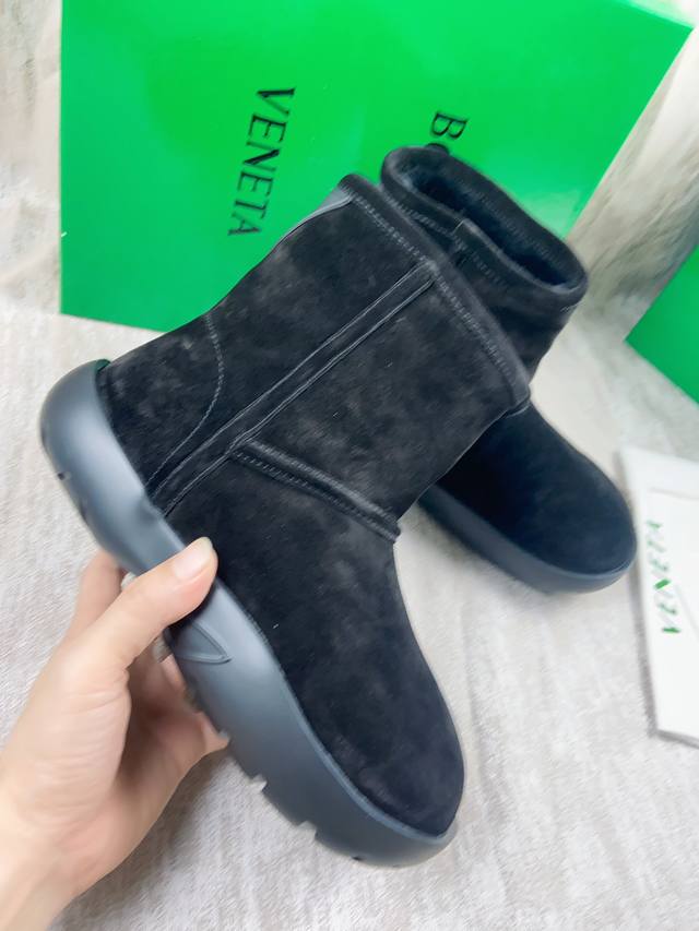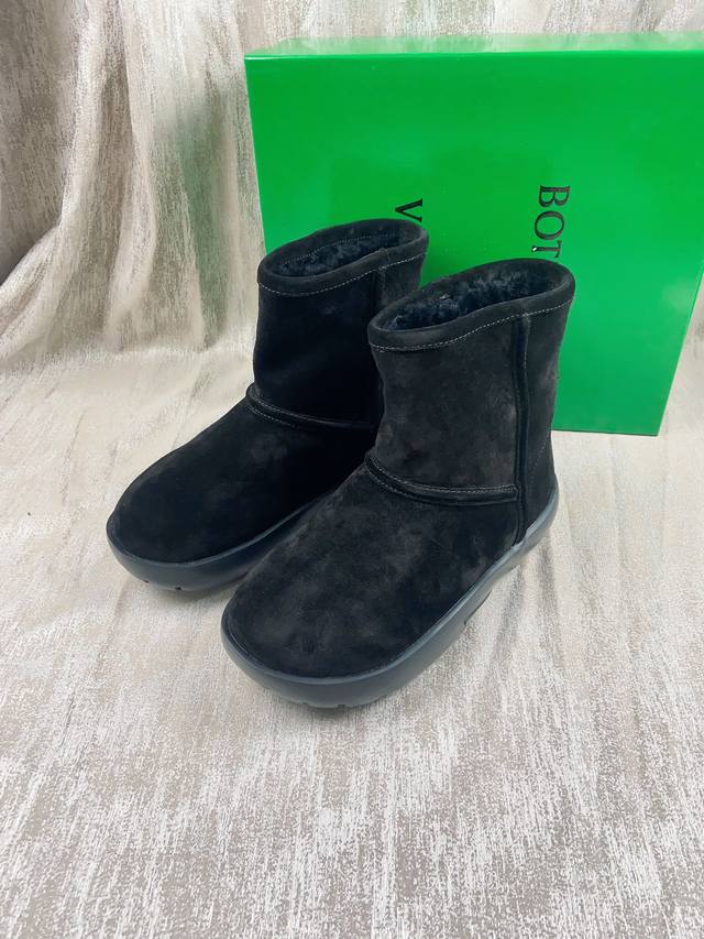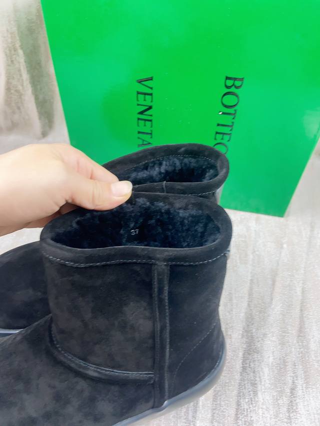 情侣款 葆蝶家bv秋冬新款圆头简易雪地靴毛毛短靴