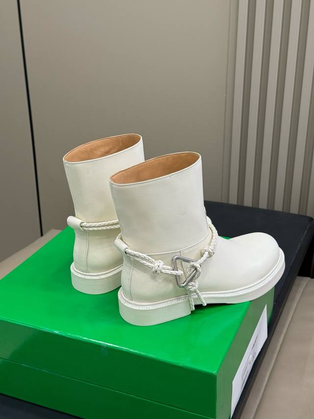 靴型超级修饰腿型,无论是肉肉腿还是小短腿,穿上立马拥有又直又细的视觉效果。倒三角设计Bv的标识,打破了纯色靴子的单调,多了几分随性不羁的酷感。优质的皮革材质,柔软又舒适,走路久了也不会磨脚,让你美丽与舒适兼得。