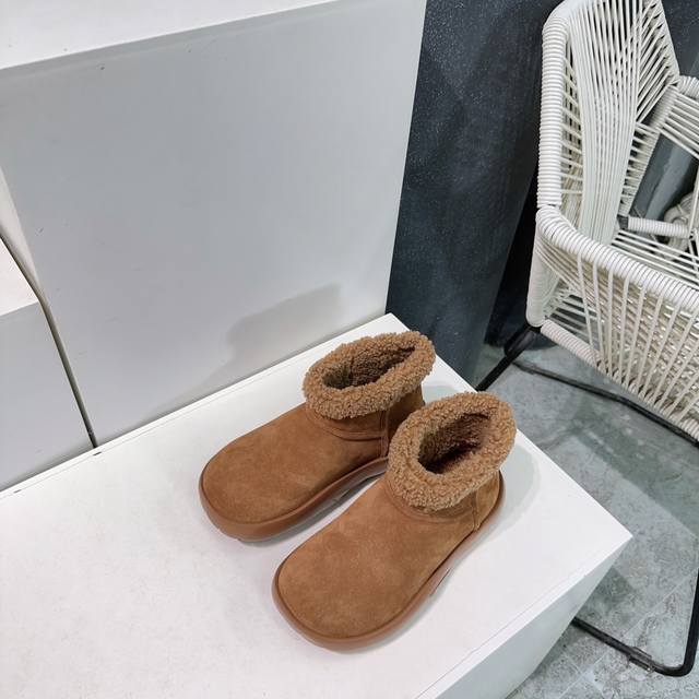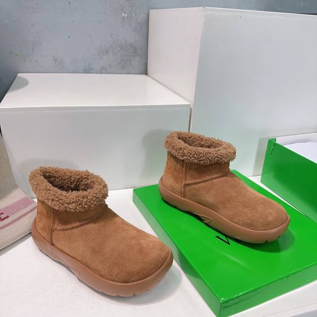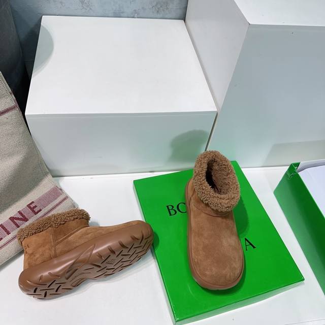 高品质出厂 !顶级品质bottega Veneta葆蝶家24Ss秋冬新款圆头简易雪地靴毛毛短靴!
