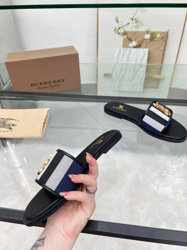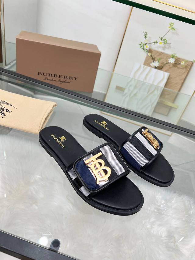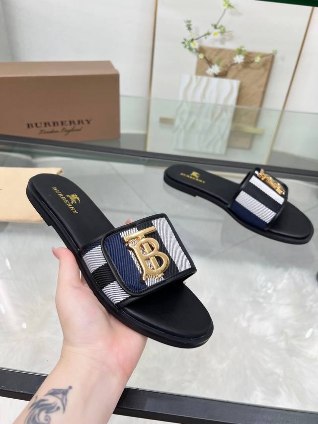 冲量价: 新款巴宝莉拖鞋,原版格子布简单舒适随性,35-43码,