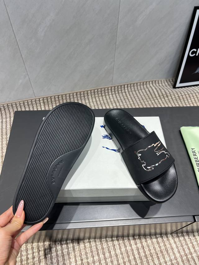 原版购入开模,做货 ,Burberry情侣胶面凉拖,休闲态度与标志镂空元素相结合,由高分子材料制作,采用独特的配色,给休闲剪影增添奢华风格,并带有出人意料的Burberry元素。夏日出街,完全是一种让人意想不到的时尚前卫单品