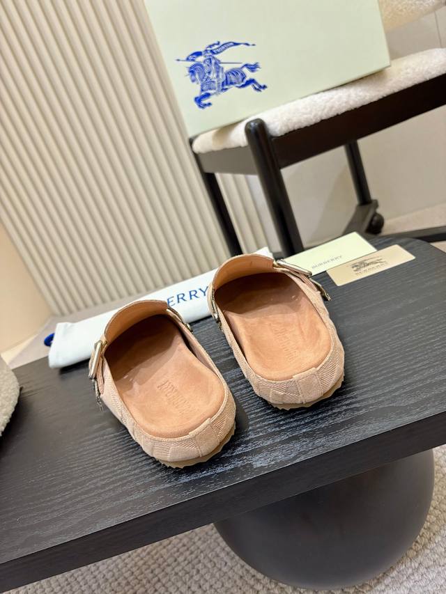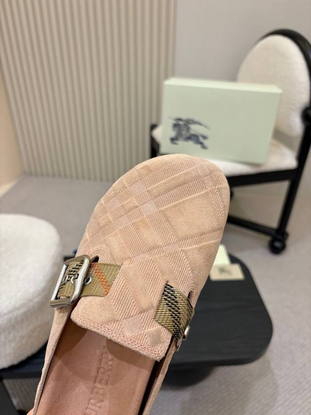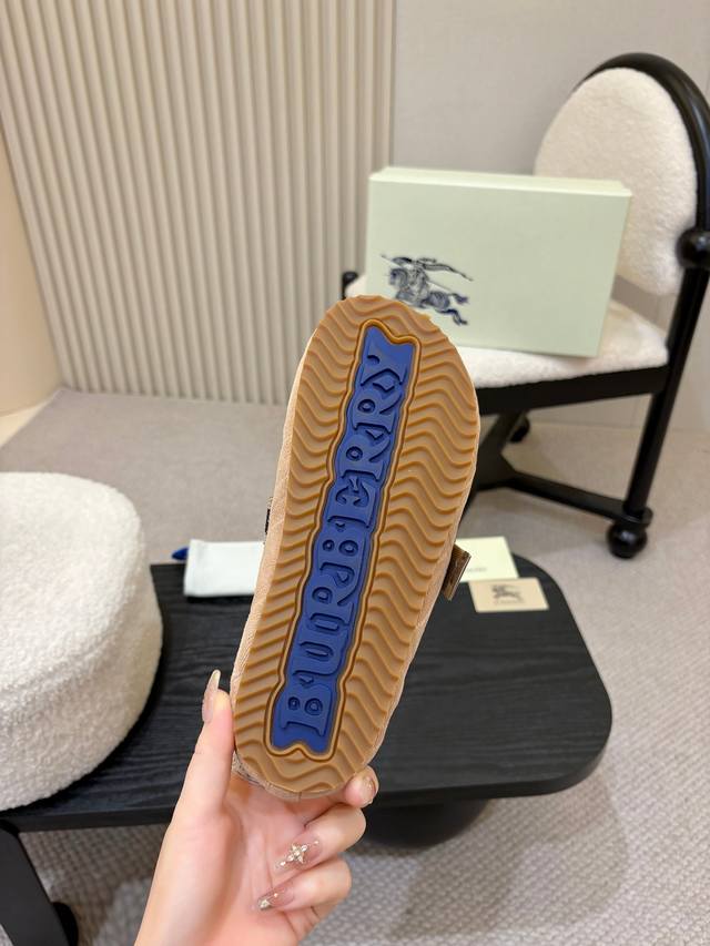 2025爆款勃肯拖鞋出炉,选用柔软反绒面革面料打造,于意大利工坊精制而成。融入格纹图案压花,搭配压纹鞋底,其上点缀典藏品牌徽标。设有可调式 B 字型扣环束带,装饰提花精纺的标志性沙色 Burberry面料:反绒皮