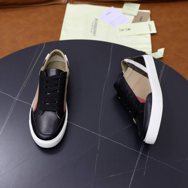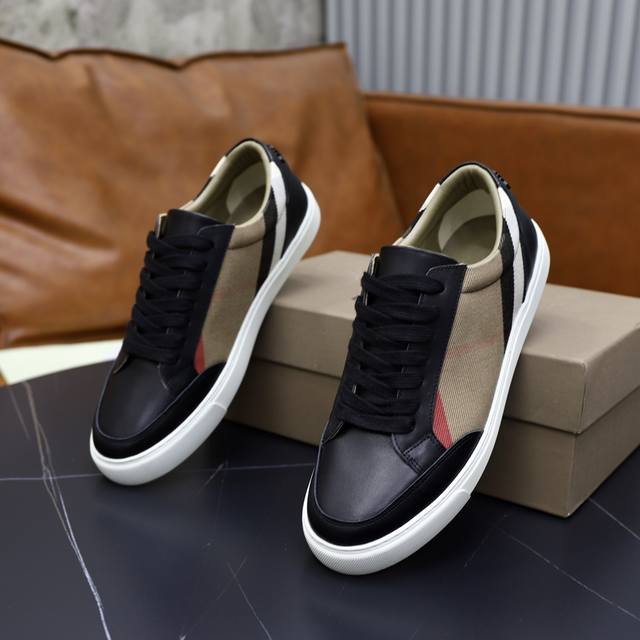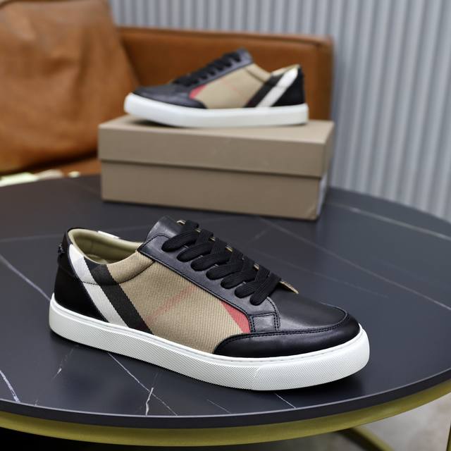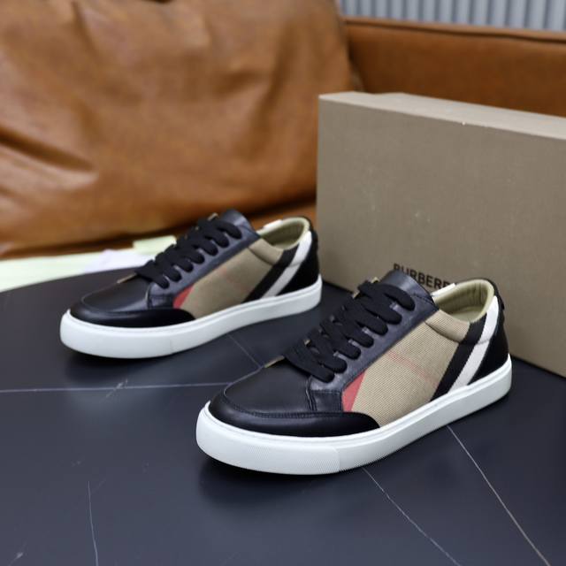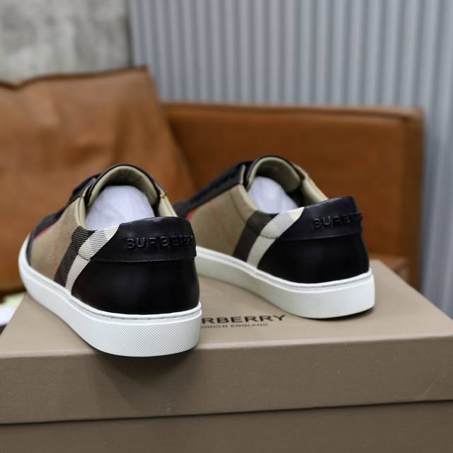 Burberry巴宝莉 经典低帮滑板套脚鞋|进口牛皮搭配经典格纹布料|舒适透气加厚羊皮内里|原版大底|做工精细穿着舒适 Size:38-44 45定做