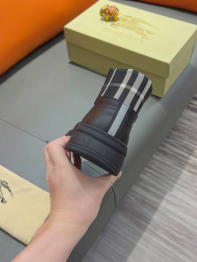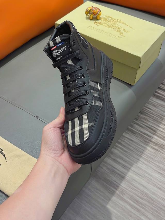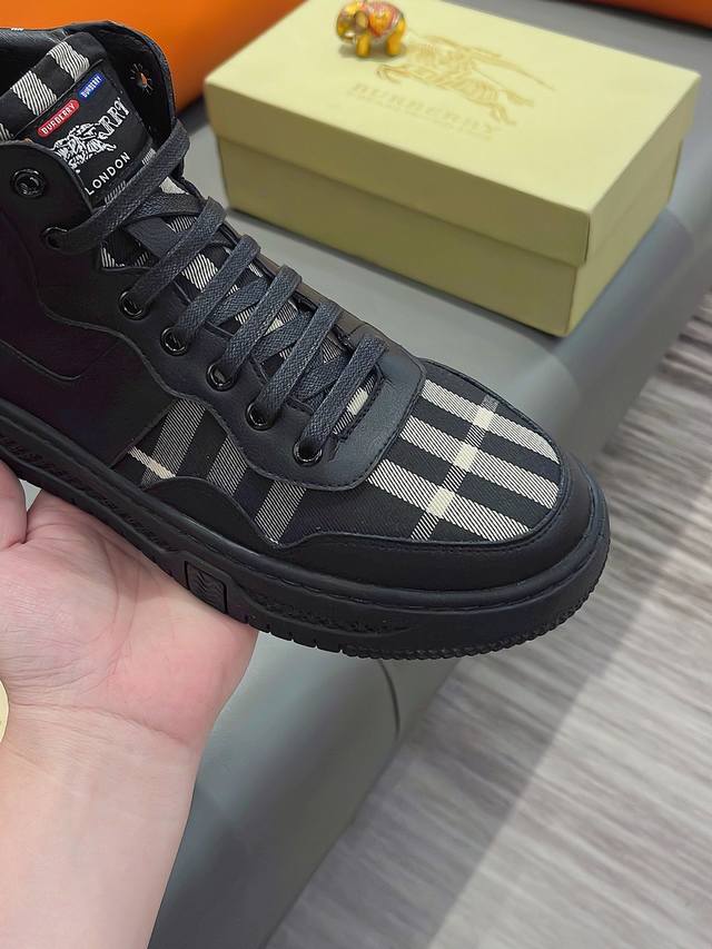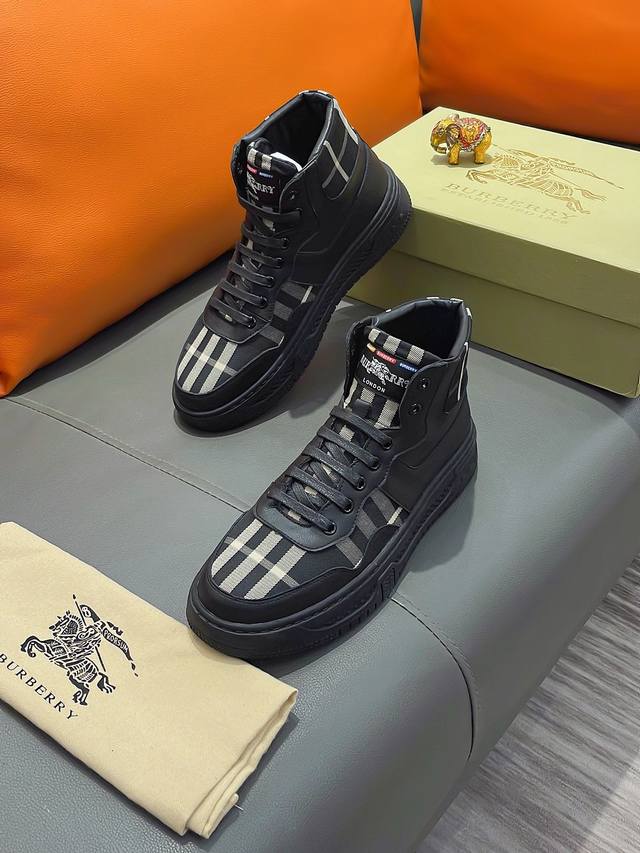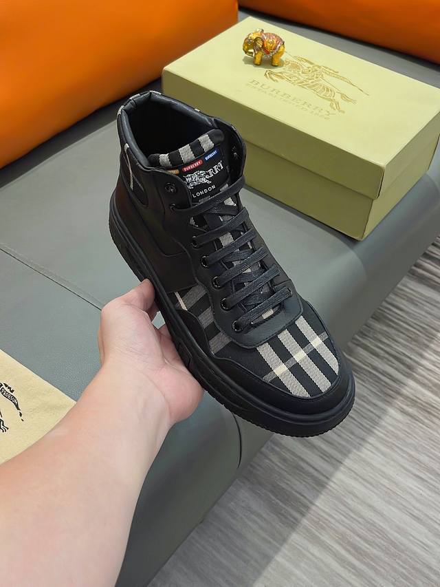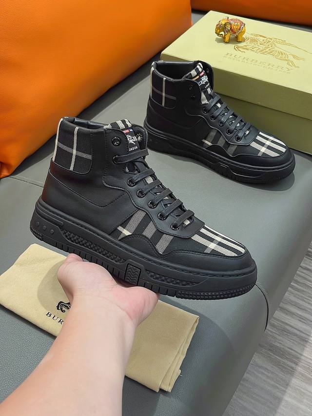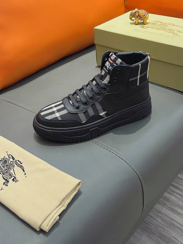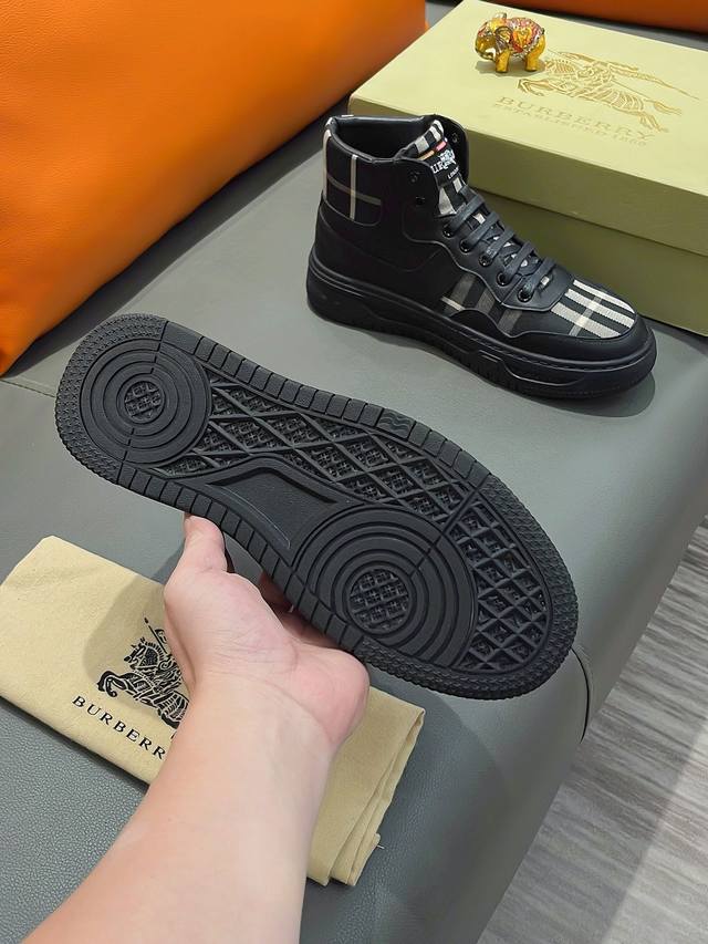 商品名称:Burberry 巴宝莉正规码数: 38-44 高帮鞋商品材料:精选 牛皮鞋面,柔软羊皮内里;原厂大底