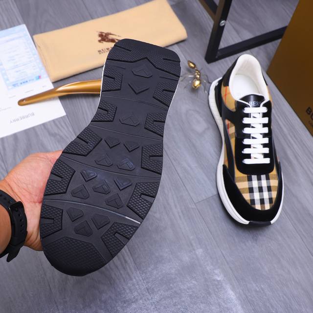 商品商标:Burberry 巴宝莉 休闲鞋 正码码数: 38-44 商品材料:精选牛皮拼接鞋面 匆内里 橡胶大底