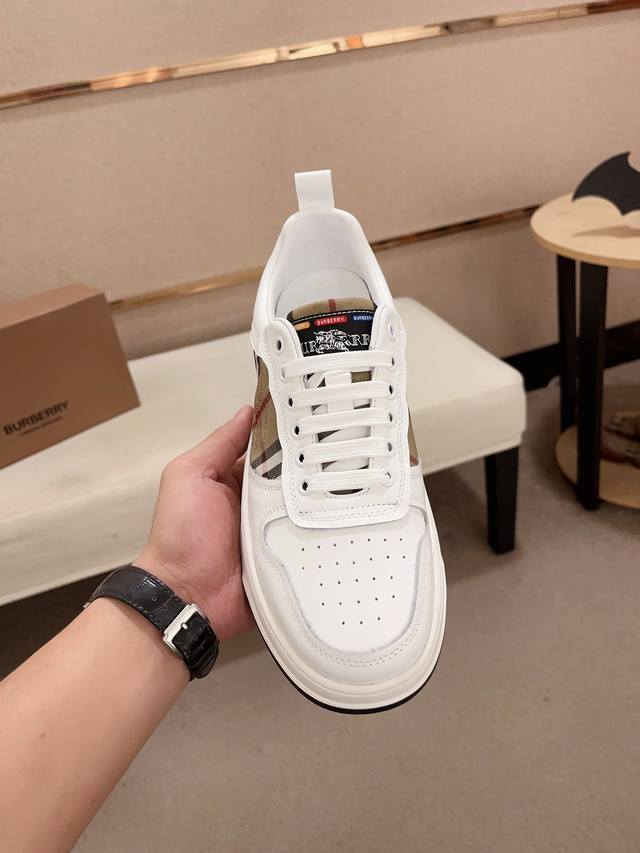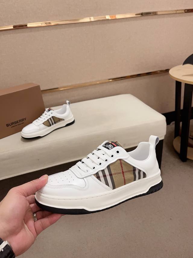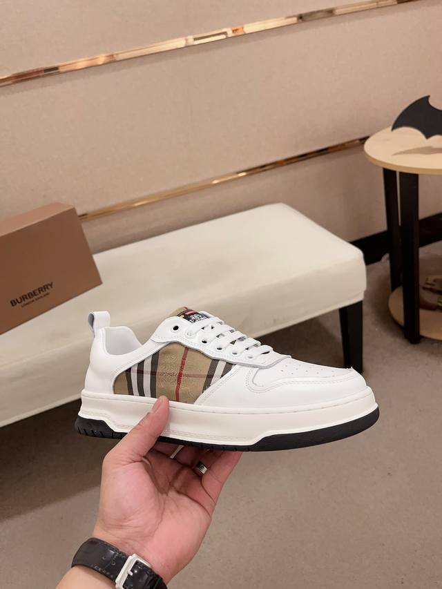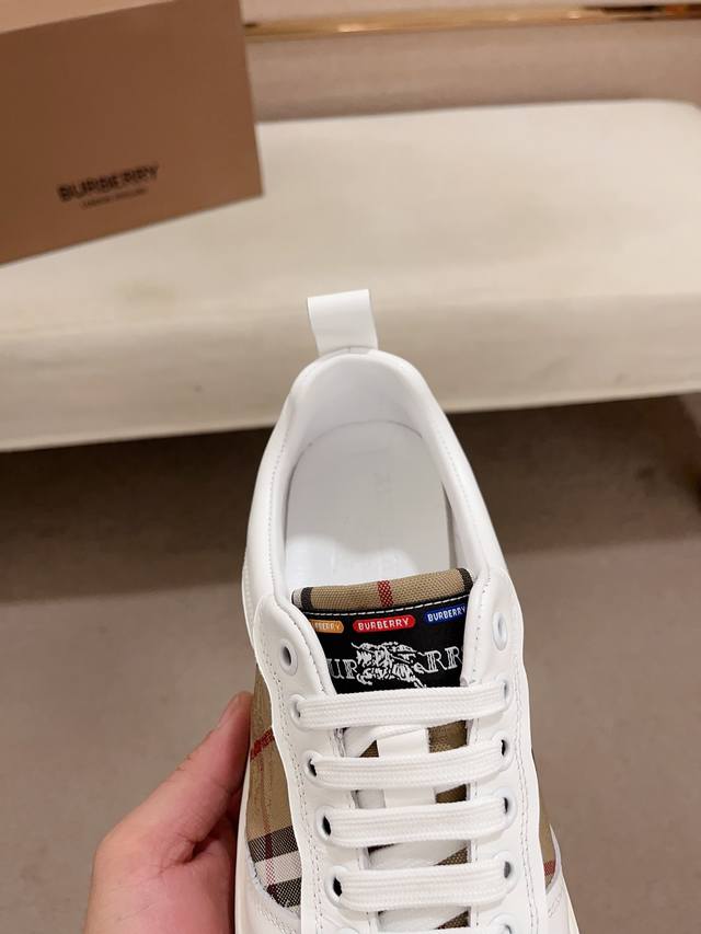 Burberr* 男士增高运动鞋!高端品质,鞋面选用头层牛皮拼接原版帆布,整体低调又不失时尚,时装秀灵感运动鞋,装饰品牌典藏...