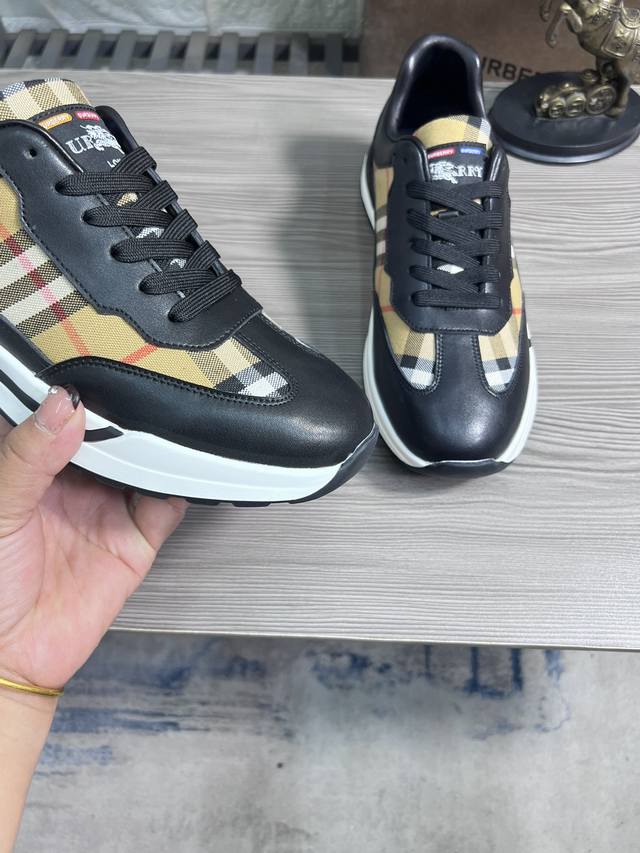 出厂价 Burberry巴宝莉 经典低帮运动鞋|进口牛皮搭配经典格纹布料|羊皮内里|原版大底|做工精细穿着舒适 Size:38-44 45定做