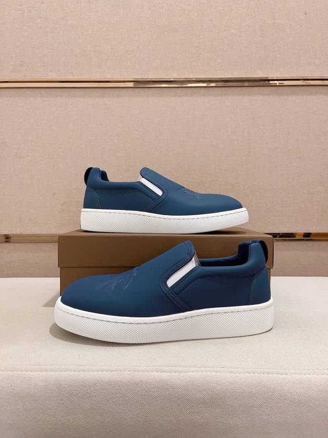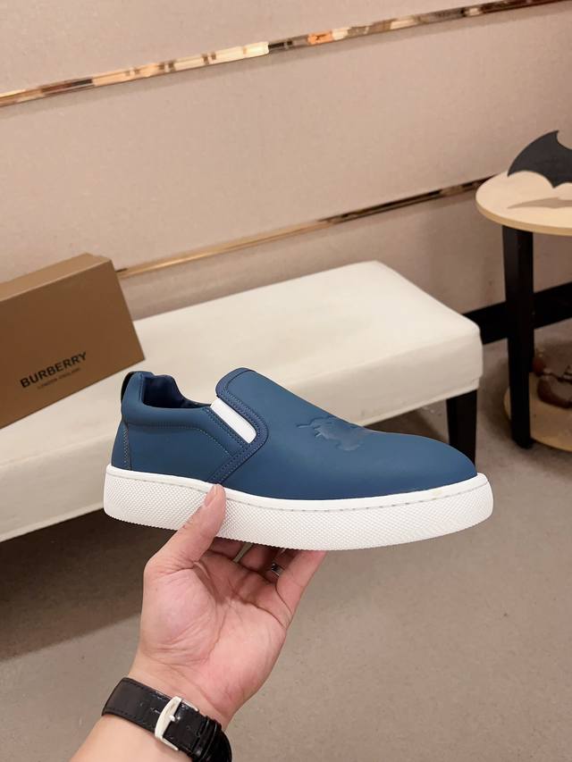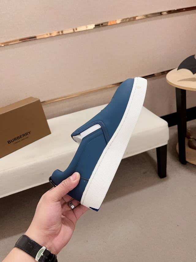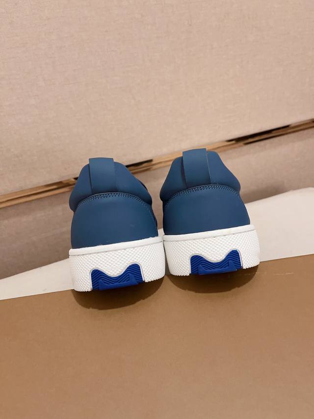 工厂价: 新款巴宝莉家男士经典低帮运动鞋,以 Vintage 复古小牛皮焕新演绎,装饰焕新的品牌徽标。头层羊皮内里,鞋跟饰有 Burberry 字母压花徽标,Tpu原版大底!码数:38-44。可定做37.45