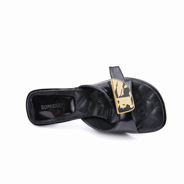 工厂p价 女装女鞋 运动原单 Burberry巴宝莉新款高跟拖鞋 跟高10厘米 ,买的原板回来一比一开的跟和扣,官网5个色齐 35-43码,橡胶底