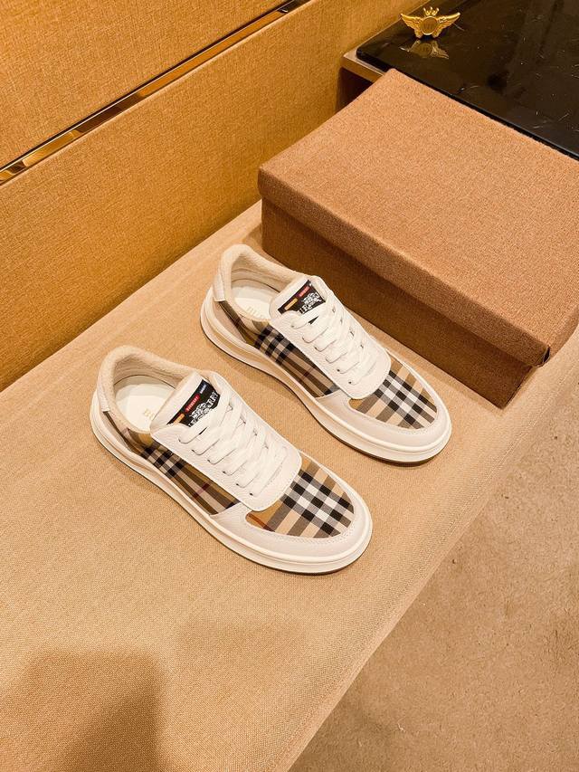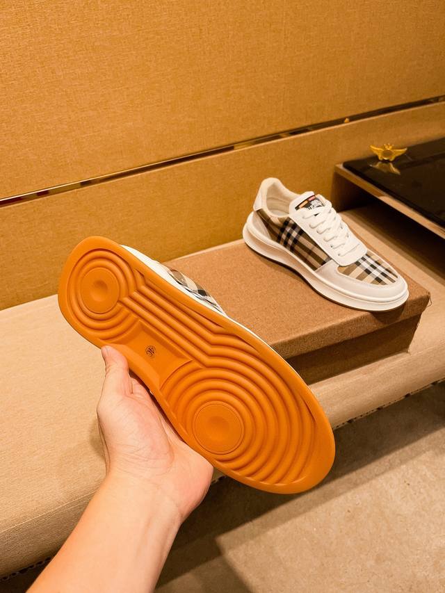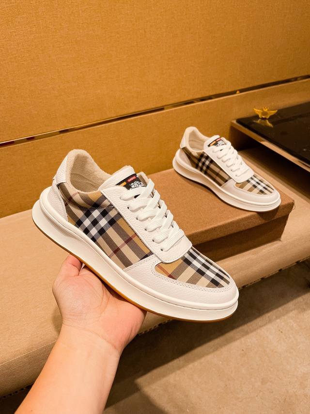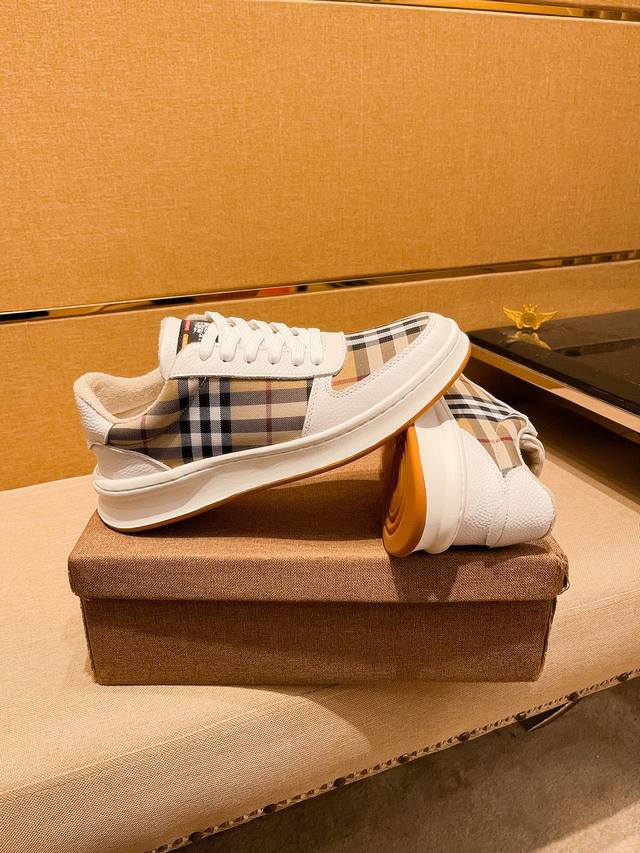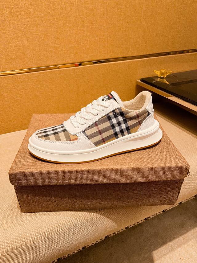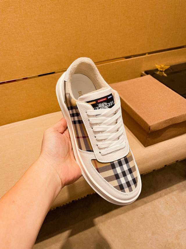 burberry 巴宝莉 。时尚运动休闲鞋,鞋面采用头层牛皮搭配格子料,头层猪皮内里,橡胶大底。男款38-44。
