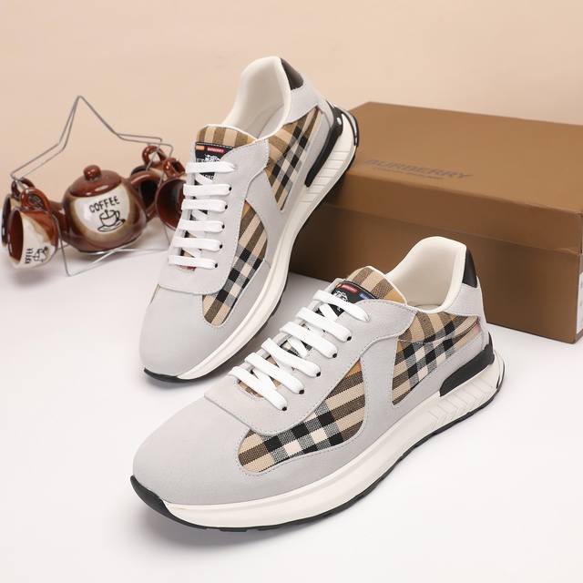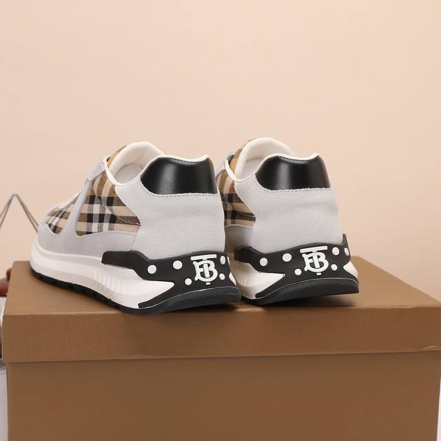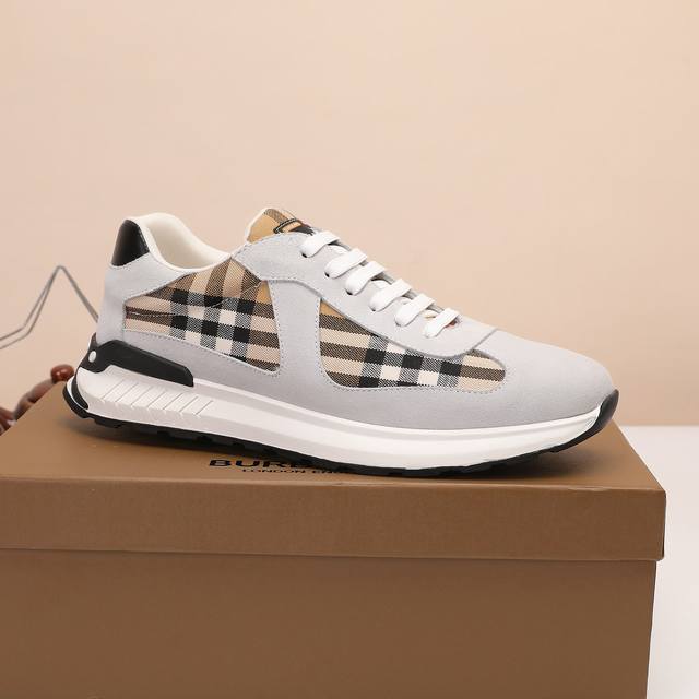 Burberr* 新款男士增高运动鞋!高端品质,鞋面选用原版格纹帆布,整体低调又不失时尚,时装秀灵感运动鞋,装饰品牌典藏...