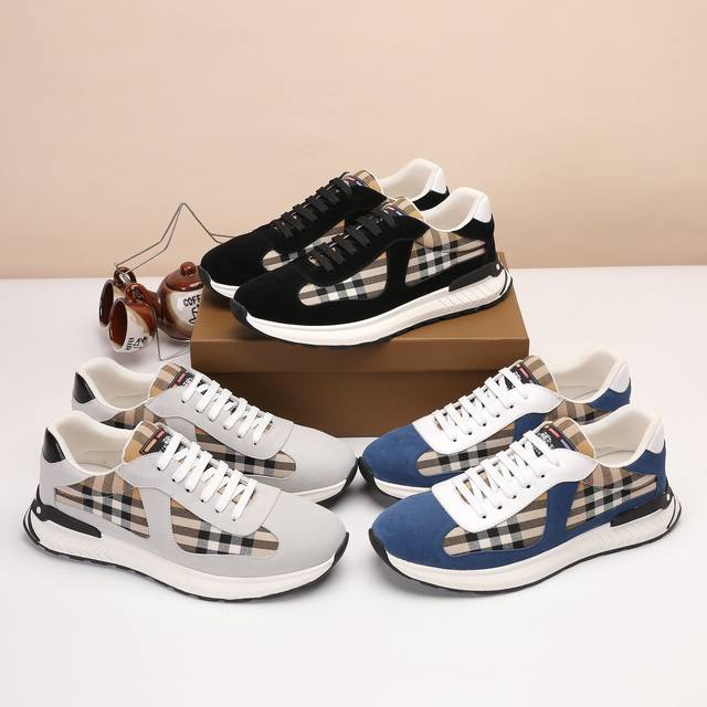 出厂价 Burberry巴宝莉 经典低帮运动鞋|进口牛皮搭配经典格纹布料|羊皮内里|原版大底|做工精细穿着舒适 Size:38-44 45定做