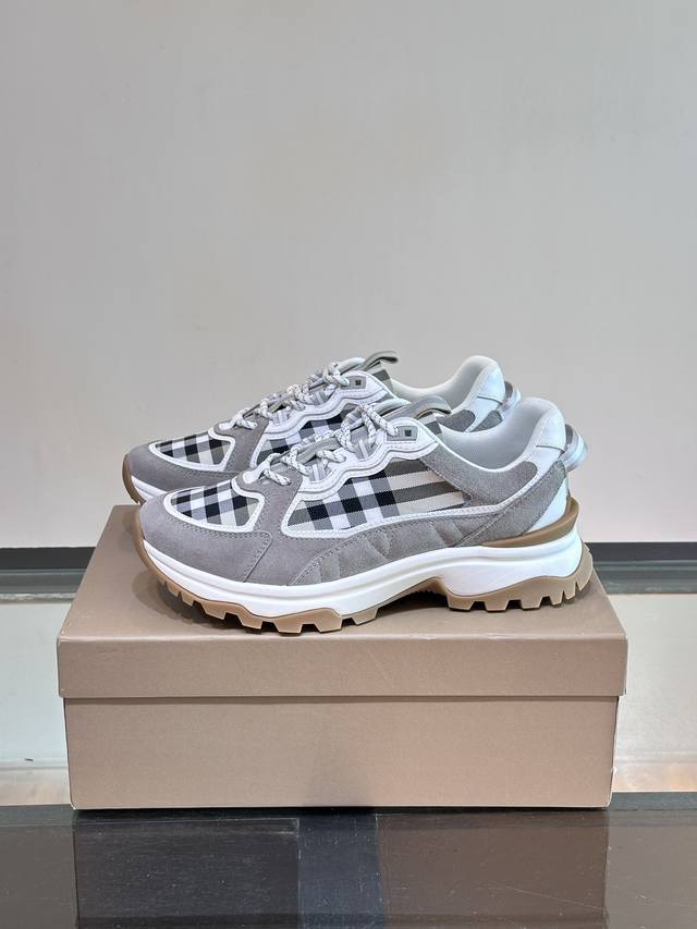 Burberry 巴宝莉 时尚运动休闲鞋,鞋面采用头层牛皮搭配格子料,头层猪皮内里,橡胶大底 男款38-44
