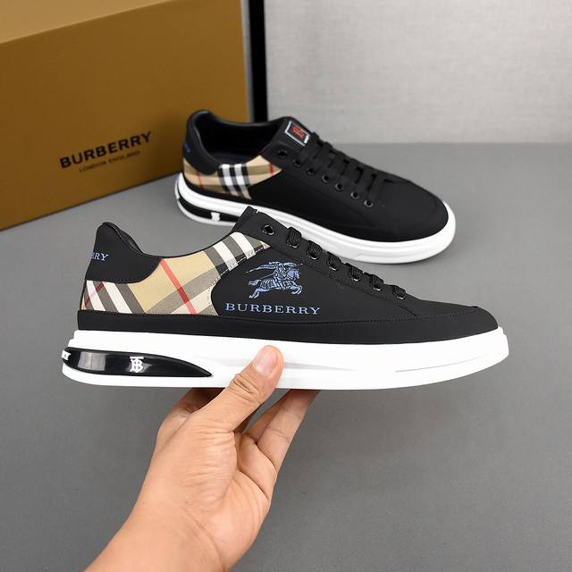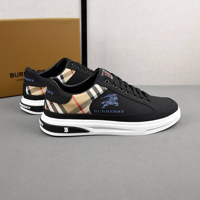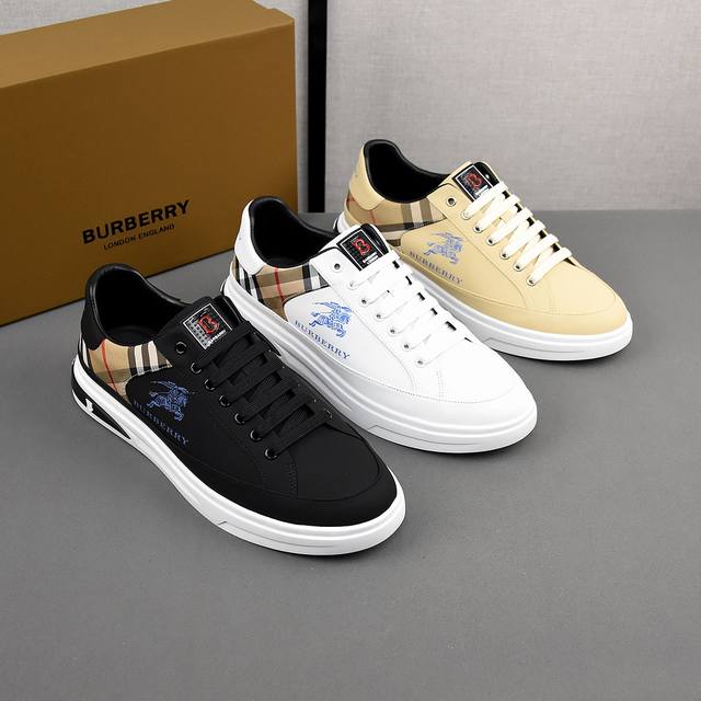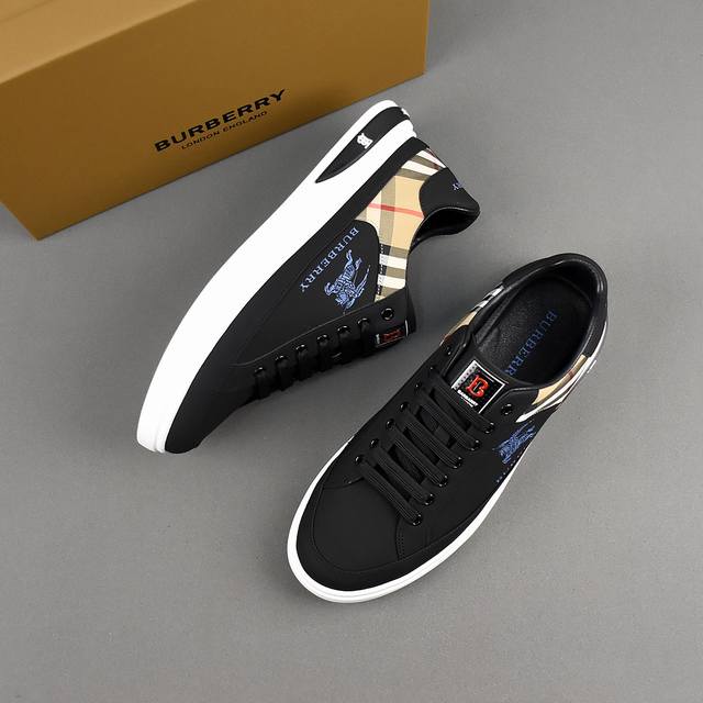 Burberry 巴宝莉 时尚运动休闲鞋,鞋面采用头层牛皮搭配格子料,头层猪皮内里,橡胶大底 男款38-44
