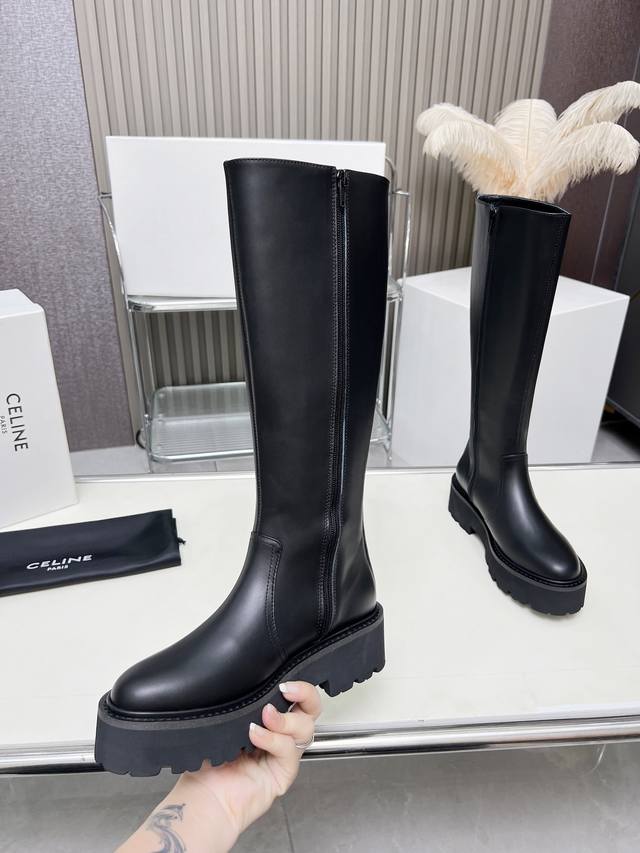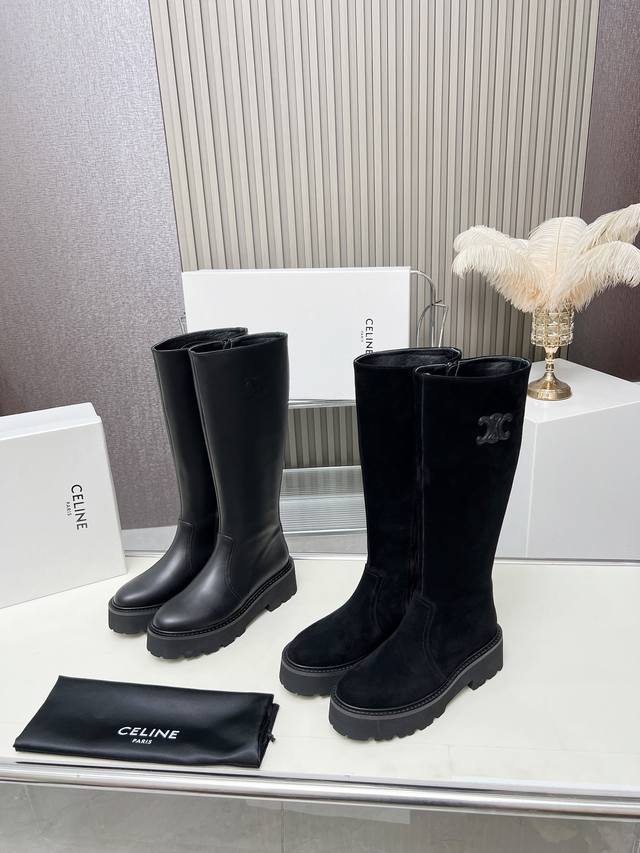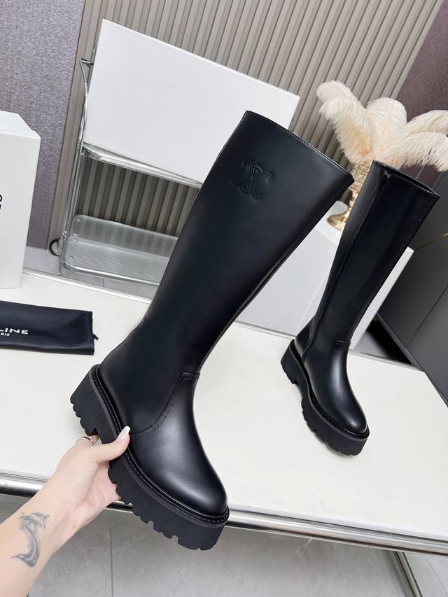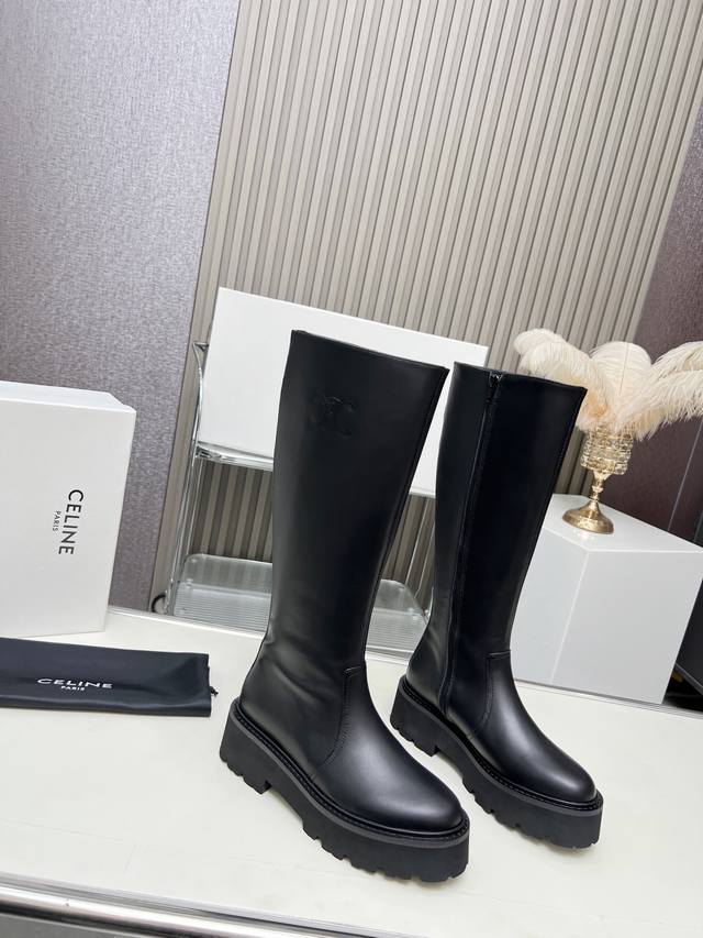 / 上新啦celine 赛琳2024凯旋门时尚百搭舒适厚底靴!!面料头层牛皮、高丝光羊京、内里羊皮发炮大底、标准码数35 40 41、42订做不退放!!高靴 ,矮靴