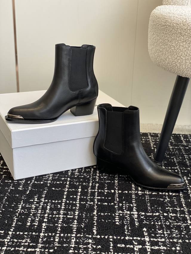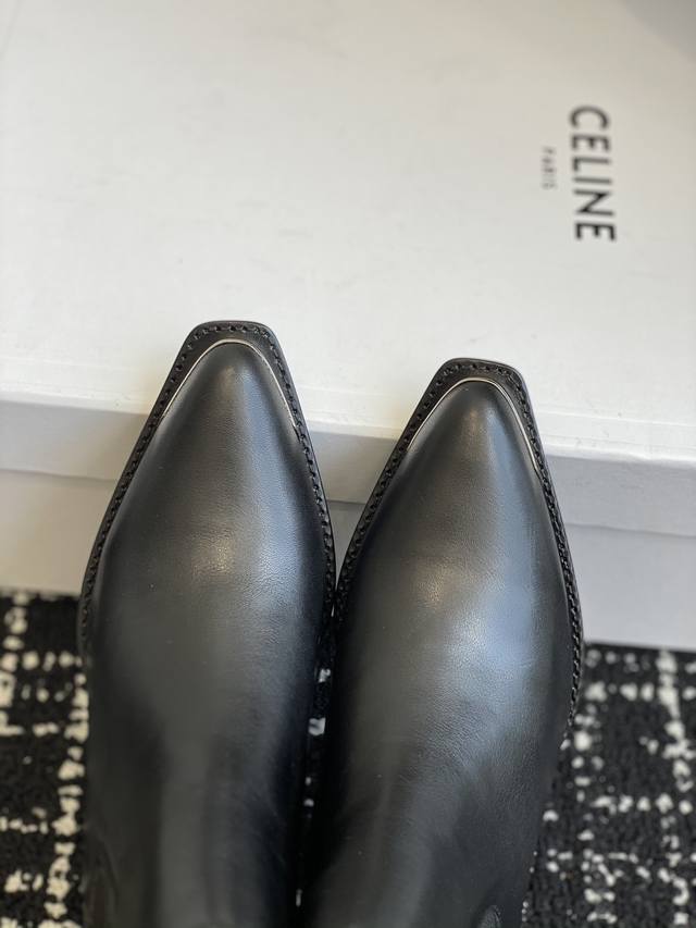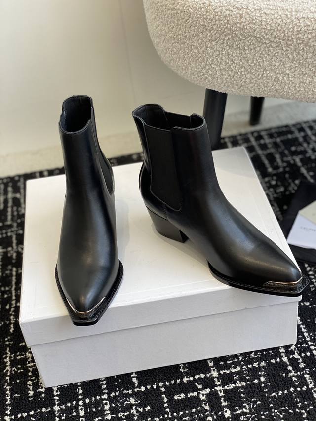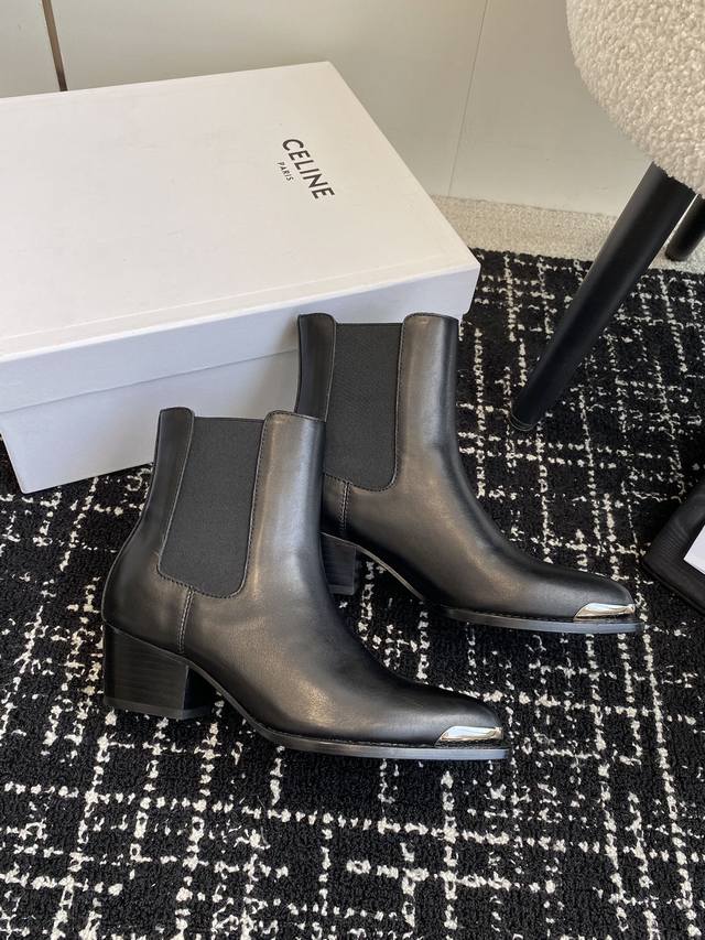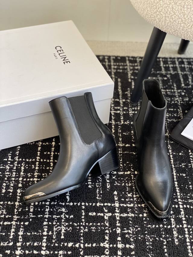 Celine 赛琳 24Ss秋冬新品 复古粗跟 切尔西 尖头 铁扣短靴