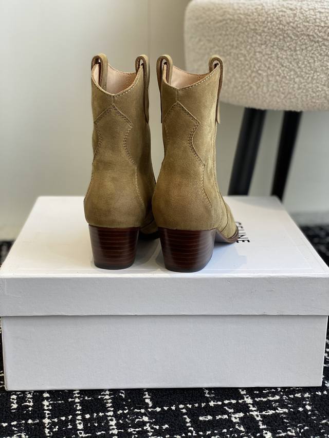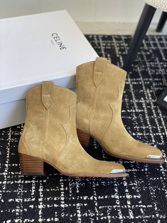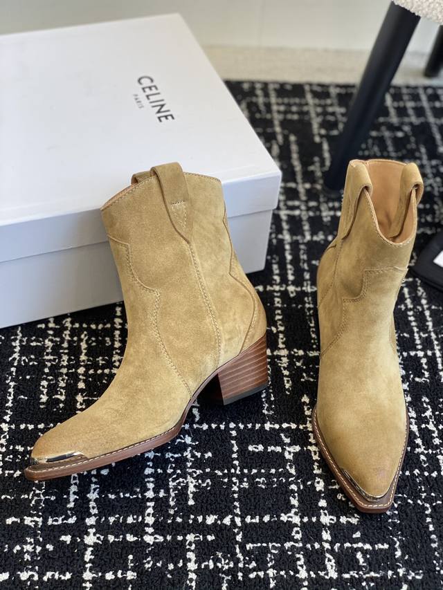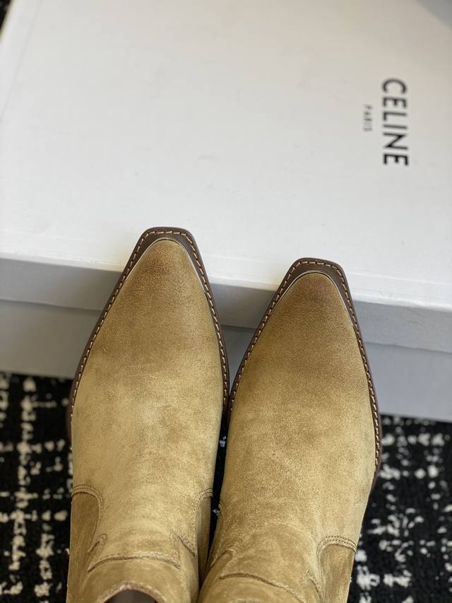 Celine 赛琳 24Ss秋冬新品 复古粗跟 切尔西 尖头 铁扣短靴