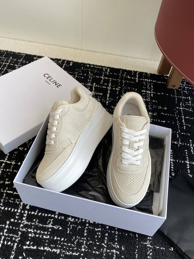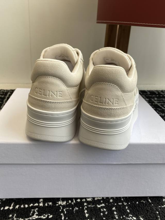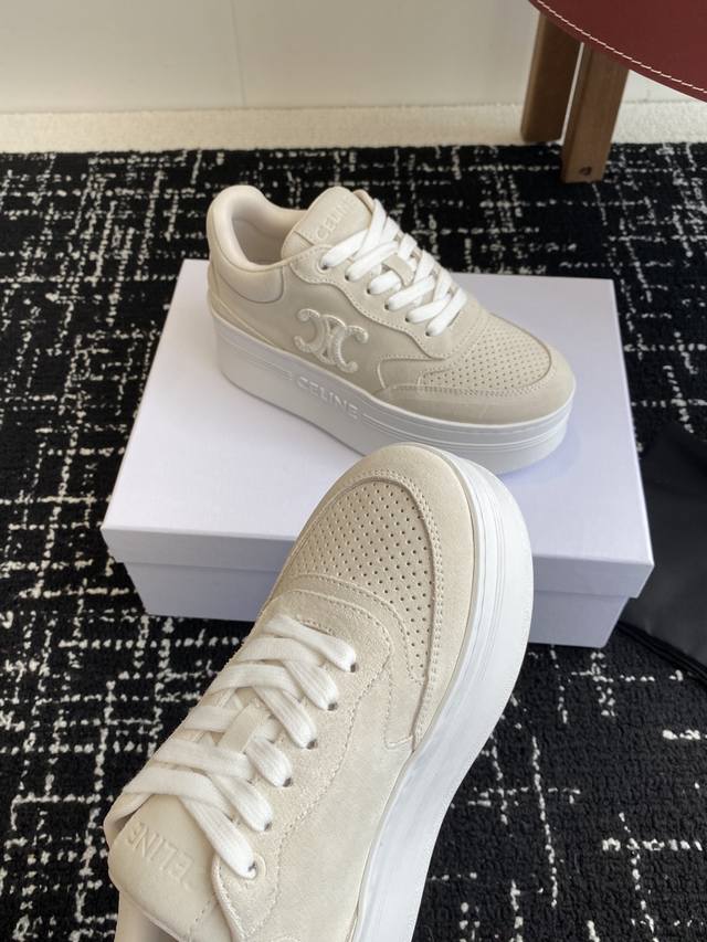 鞋后帮和侧面压印Celine标志厚底面包鞋2025春夏新款女凯旋门徽标系带简单舒服,干净利落,增高显腿细